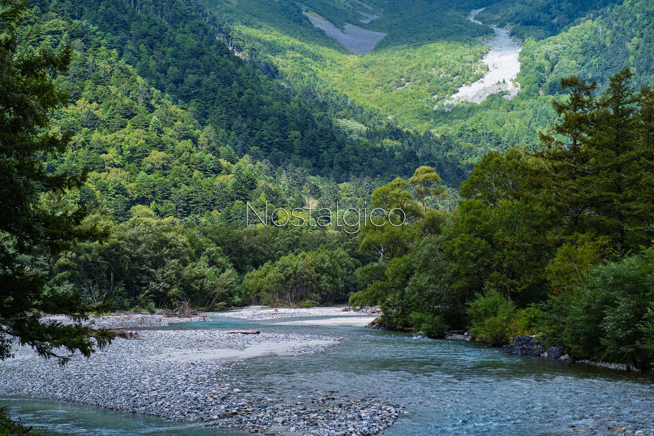 夏の穂高岳の麓と梓川(あずさがわ)の美しい写真素材です。この作品は、輝く夏の空の下、穂高岳の雄大な姿と清流の梓川が一体となり、自然の美しさを余すところなく表現しています。見る人に心の癒しと感動を与える特別な瞬間を丁寧に切り取ったこの写真は、さまざまなプロジェクトでの活用に最適です。