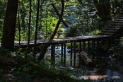 夏の木漏れ日が差し込む森の小川に架かる木造の橋の美しい写真素材です。この作品は、上高地の自然が作り出した静謐で心温まる瞬間を丁寧に切り取っており、柔らかな光が森林の緑と穏やかな小川を照らし出します。見る人に深い安らぎと共に、大自然の魅力をしっかりと伝える特別な景色を表現しており、さまざまなプロジェクトでの活用に最適です。