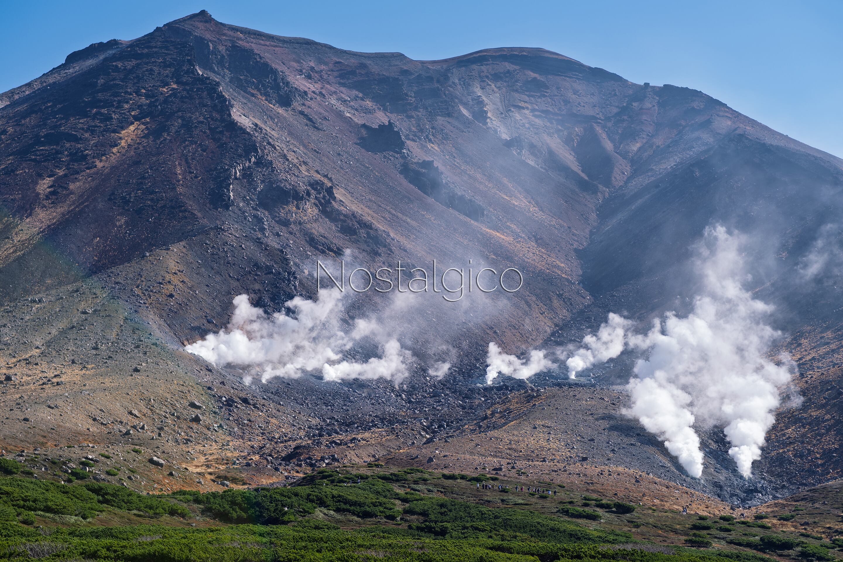 晴れの日の旭岳の壮大な展望を捉えた美しい写真素材です。この作品は、澄んだ青空と広がる山々のコントラストを鮮明に表現しており、見る人に心躍る風景を提供する一枚です。旭岳の魅力は、さまざまなプロジェクトでの活用に最適です。