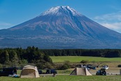快晴の空の下、雪化粧を纏う雄大な富士山を正面に望む秋のキャンプ場の風景を捉えた美しい写真素材です。この作品は、富士山の荘厳な姿と秋の自然が織り成す心躍る風景を見事に表現しており、見る人に大自然の美しさと感動を提供する一枚です。富士山の持つ魅力は、さまざまなプロジェクトでの活用に最適です。
