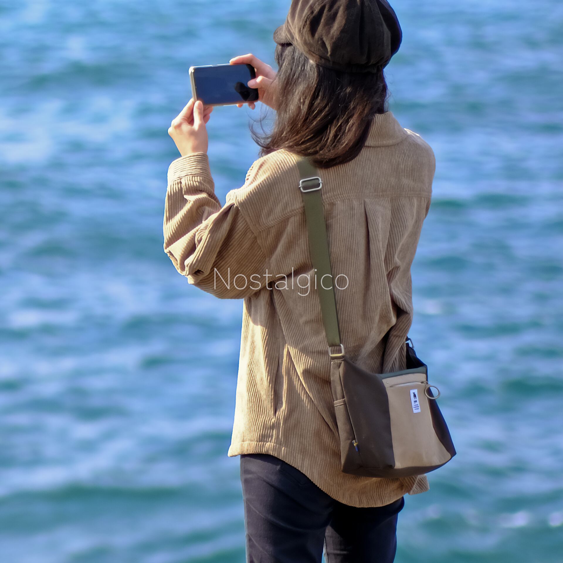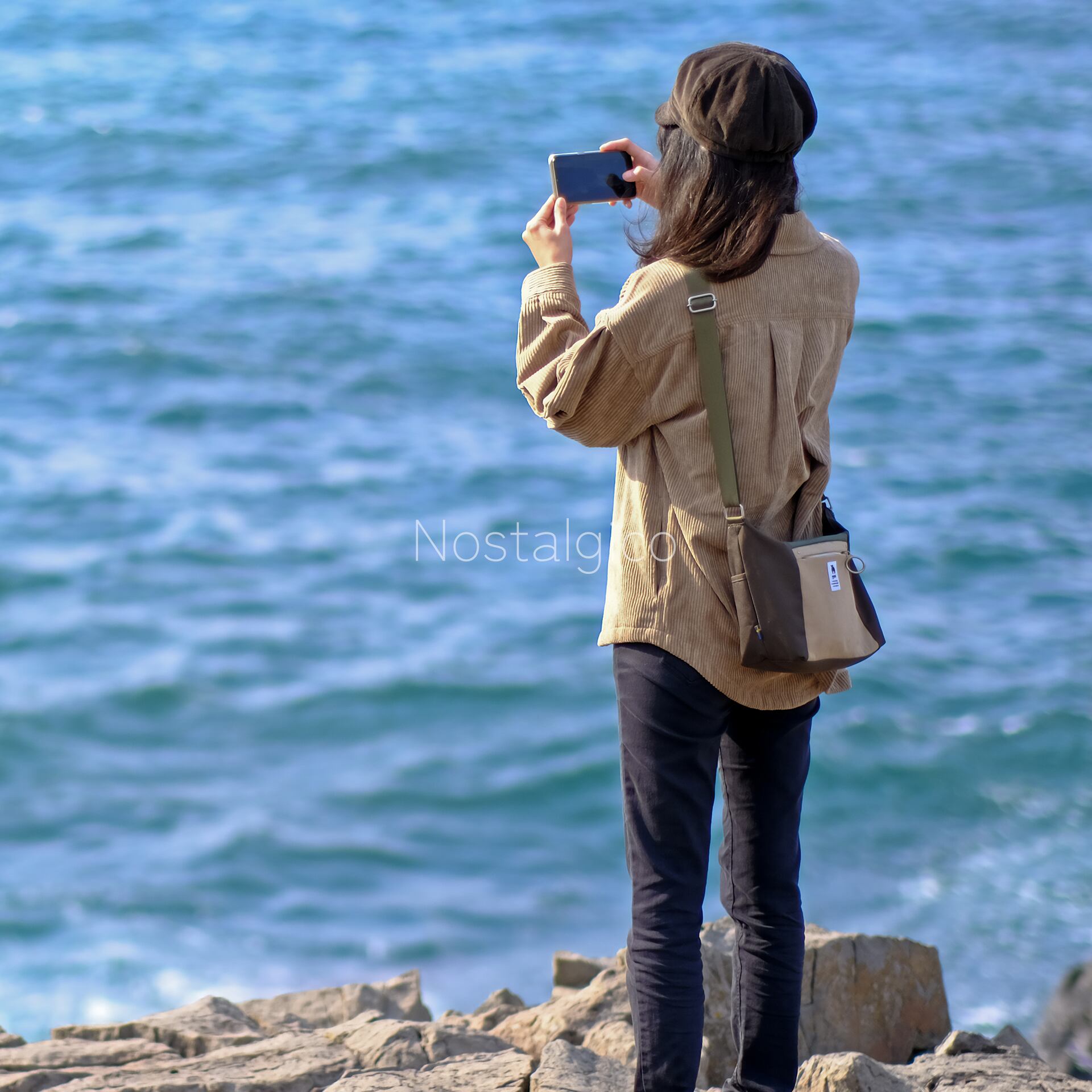 海面がキラキラ煌めく美しい海を写真に収めようとしています。