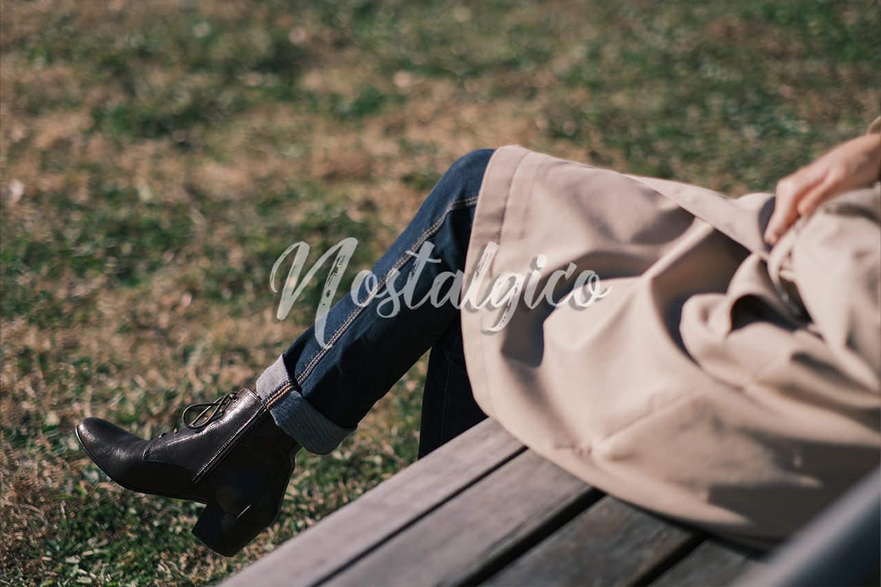 ベンチに座るトレンチコートを着た女性の足組み 秋・冬 | Nostalgico(ノスタルジコ)写真素材販売ショップ