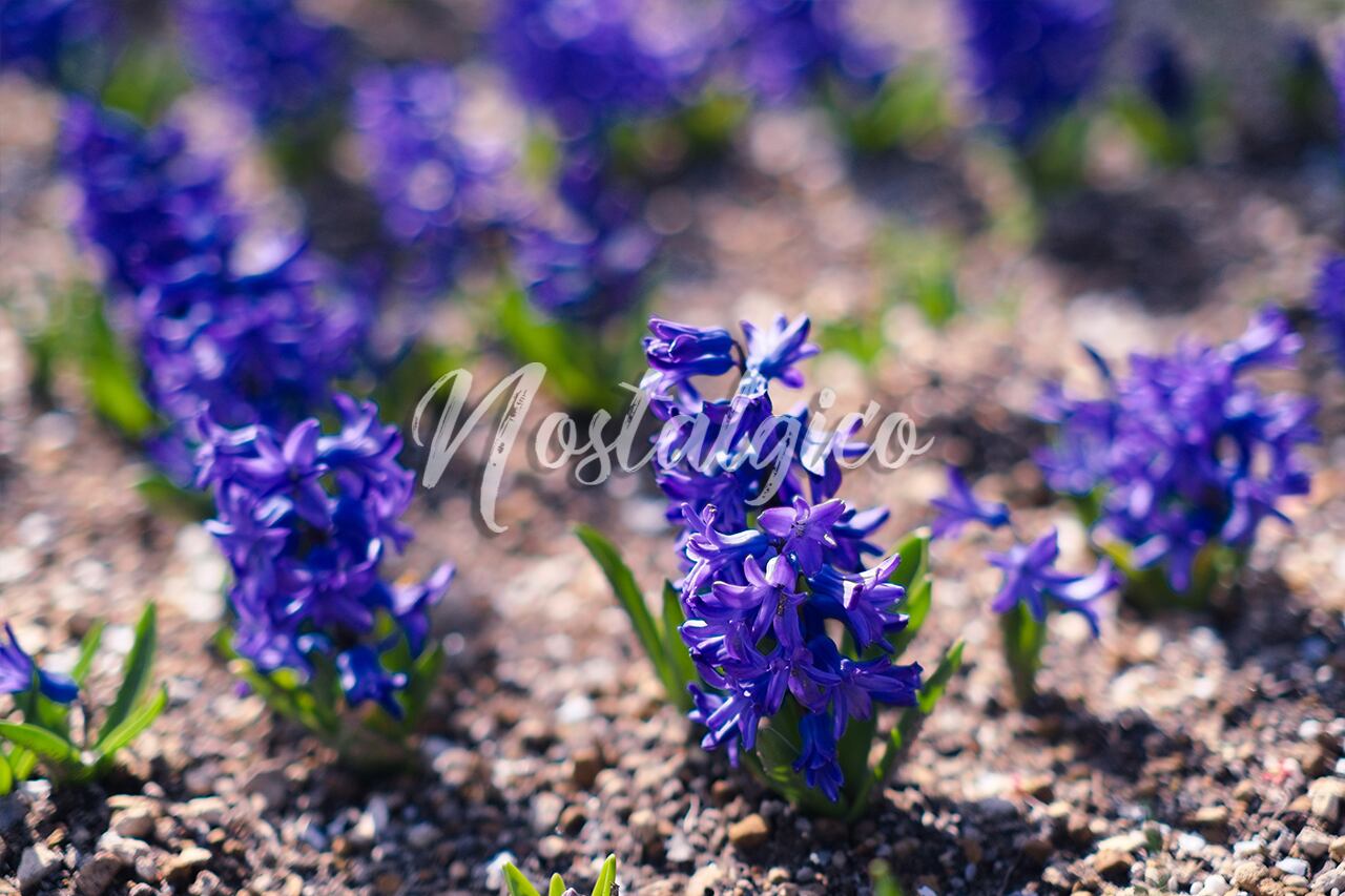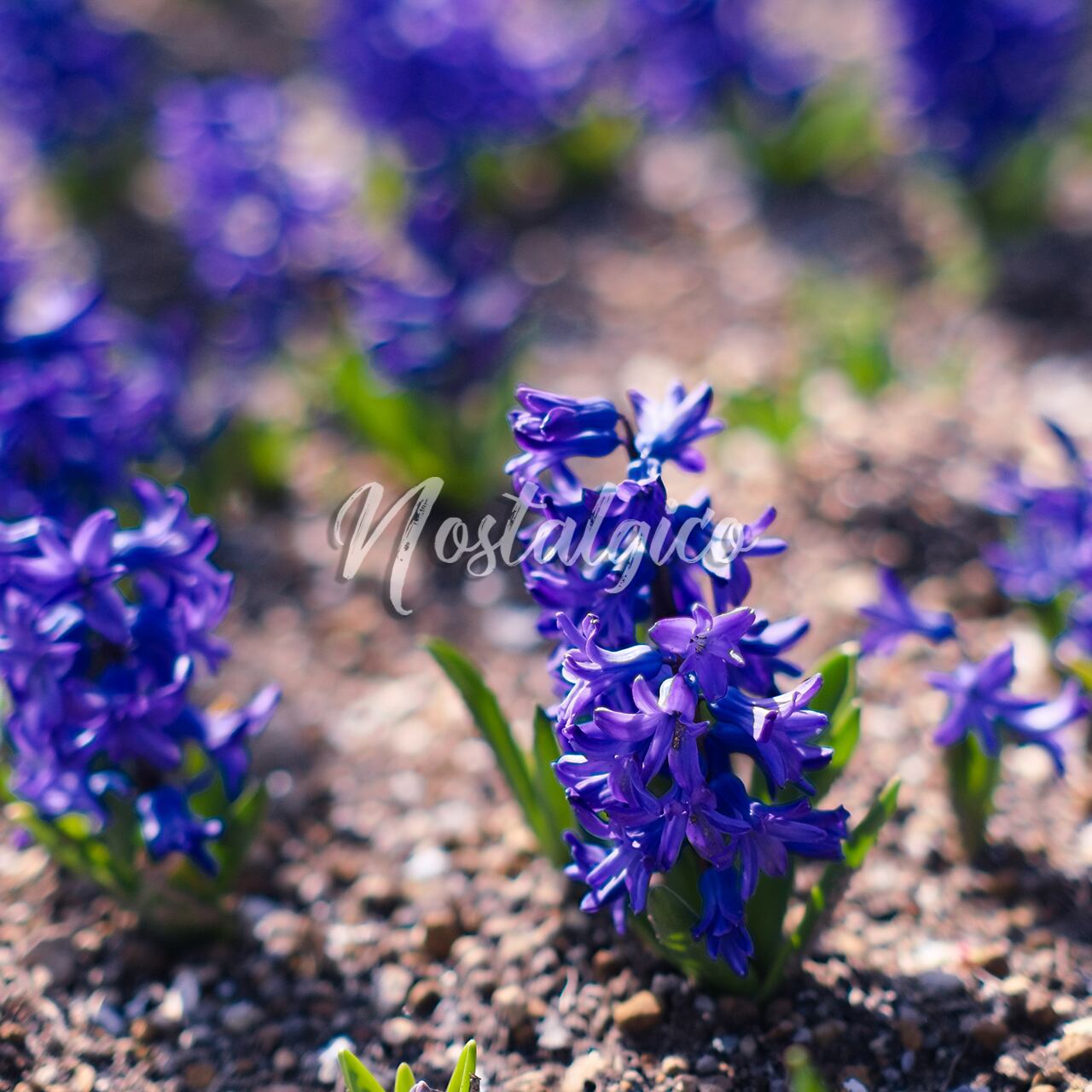 鮮やかな紫色のヒヤシンスの写真です。季節は春です。
