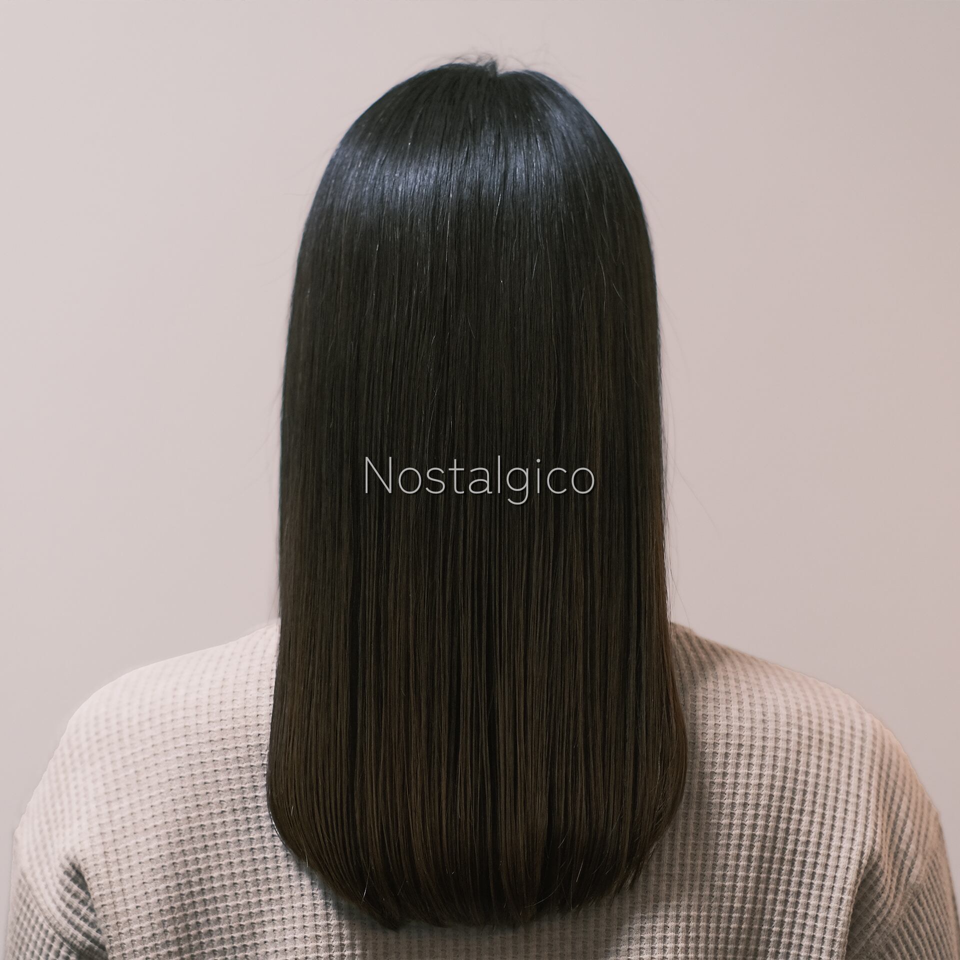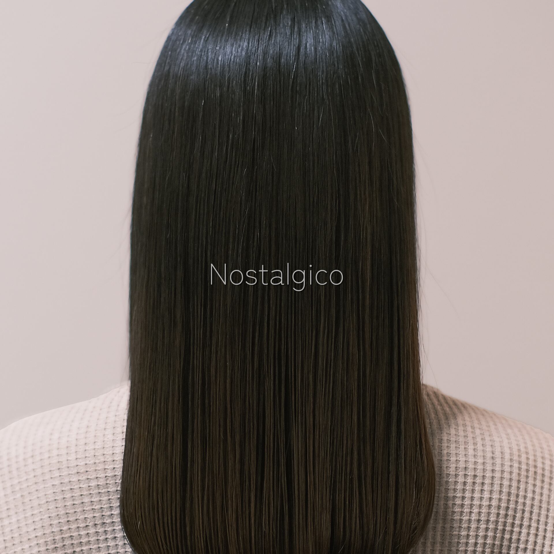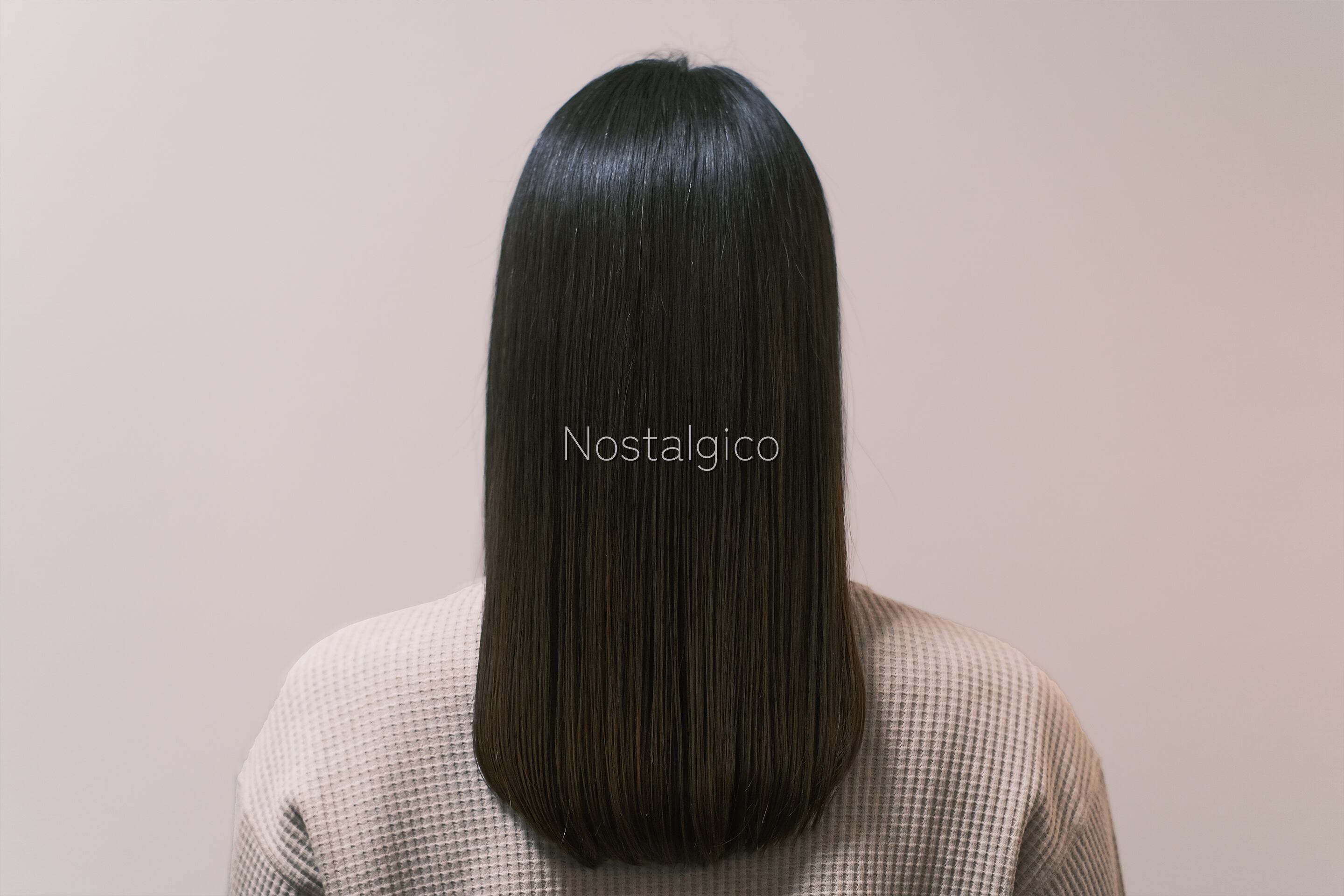 髪に艶のあるストレートヘアの女性の写真です。カラーも落ち着いています。