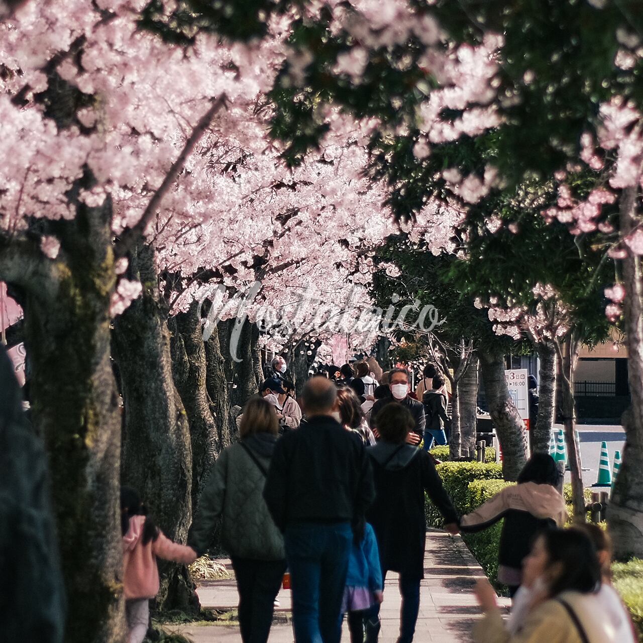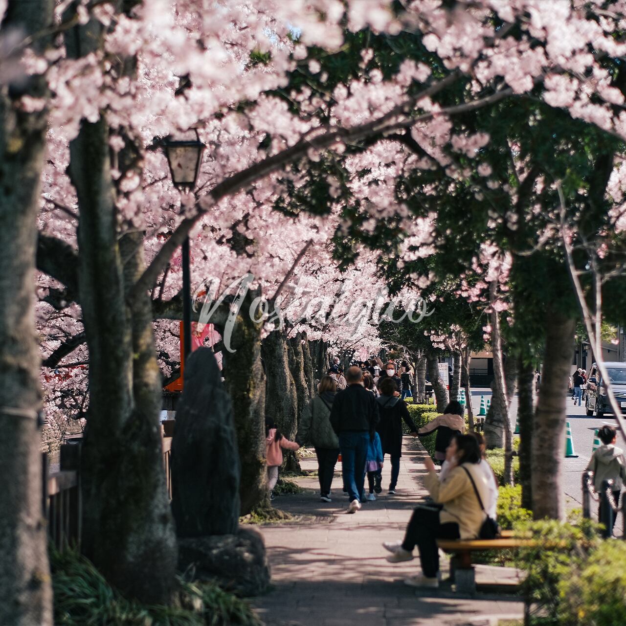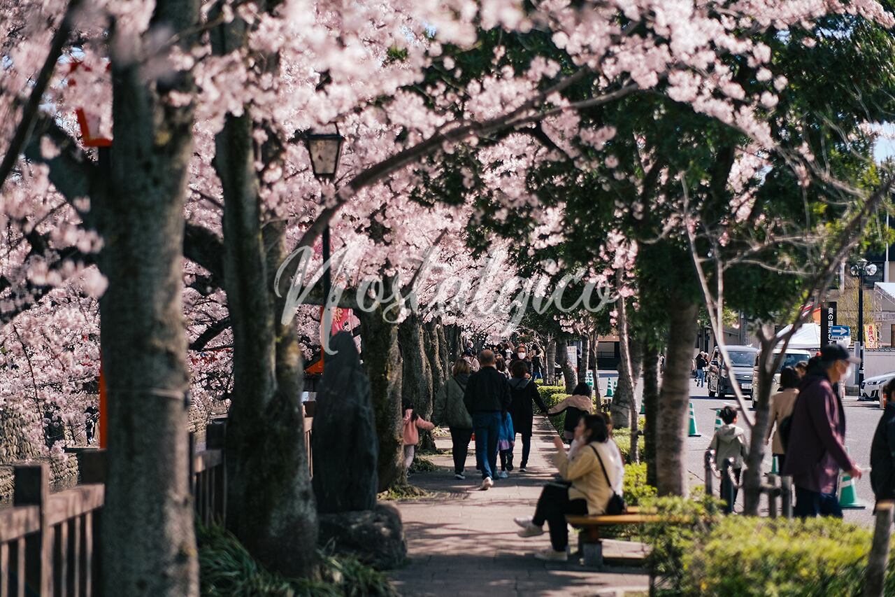 水門川の桜並木を歩く人たち(奥の細道むすびの地 岐阜県大垣市) | Nostalgico(ノスタルジコ)写真素材販売ショップ