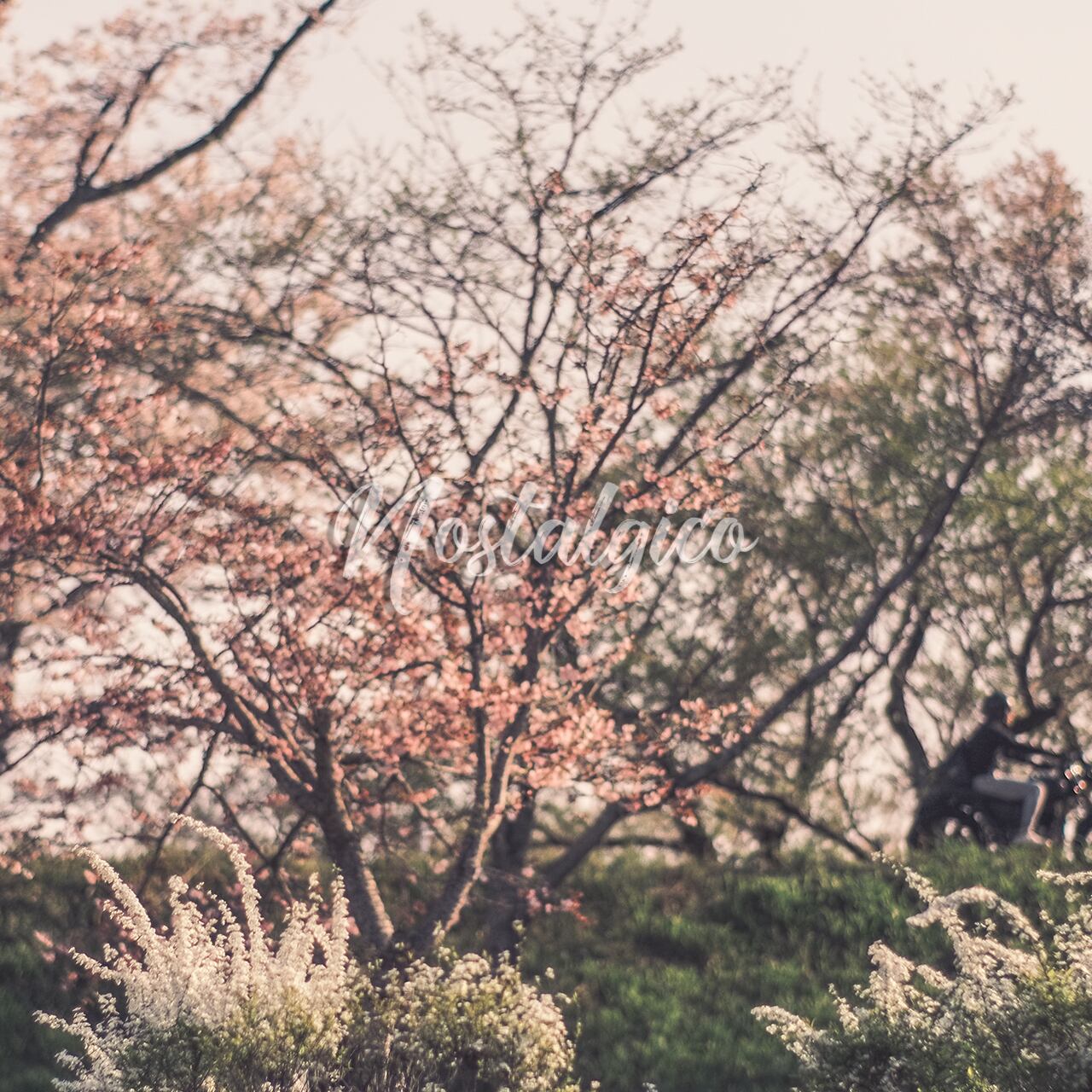 夕方の土手道を走るバイクの写真です。季節は春です。 画像ファイル形式:JPEG 画像サイズ:幅6240ピクセル×高さ4160ピクセル ※ご購入前に「ABOUT」タブから詳細をご確認ください。