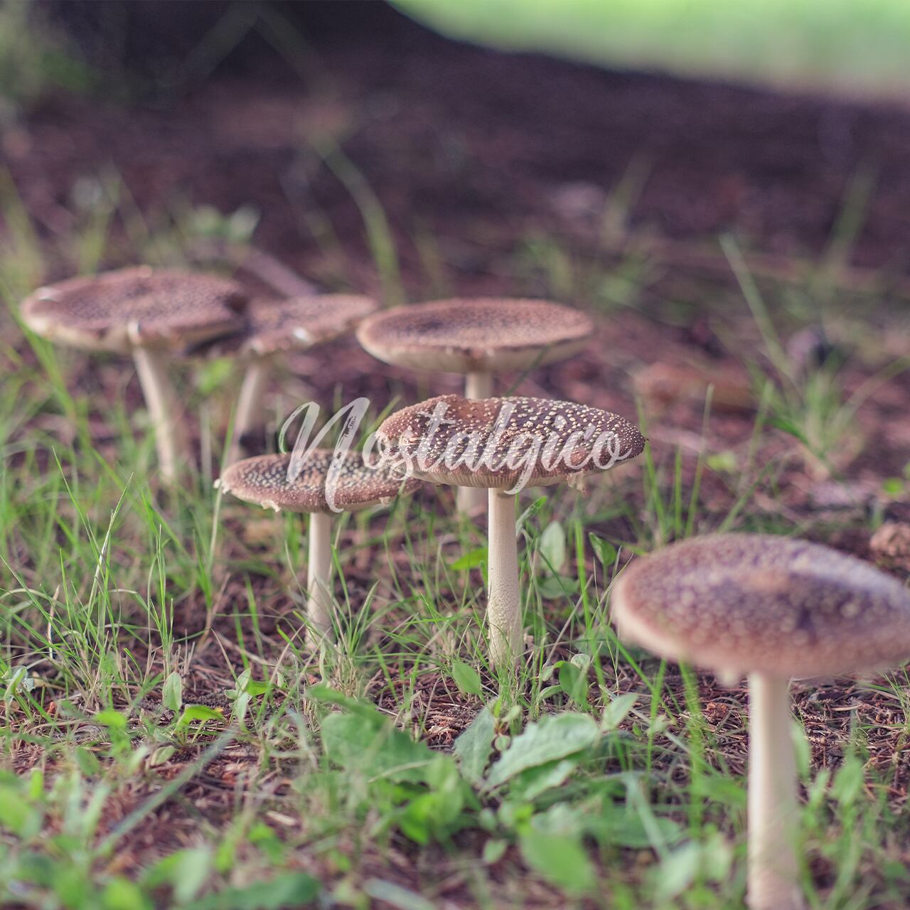 木陰にひっそりと生えているキノコの写真です。季節は秋です。