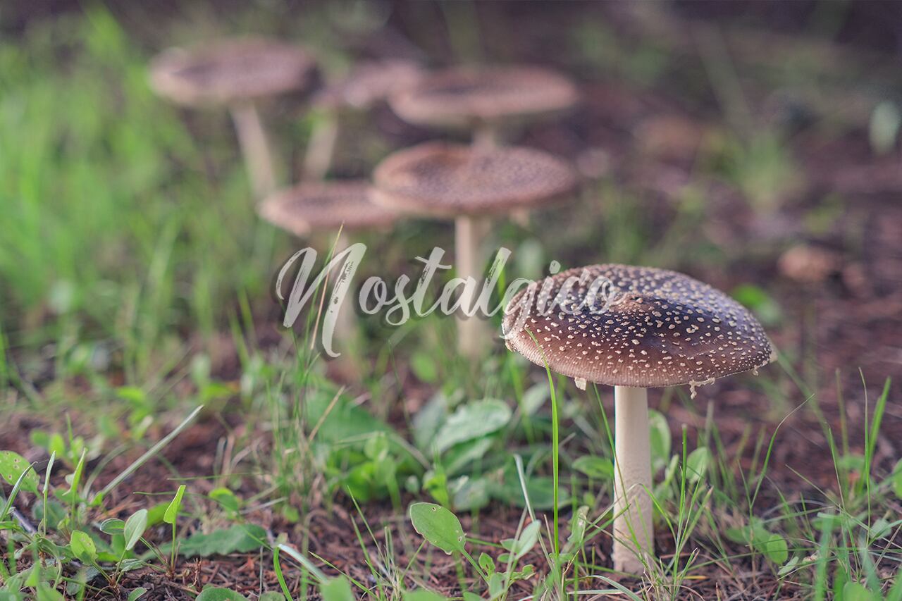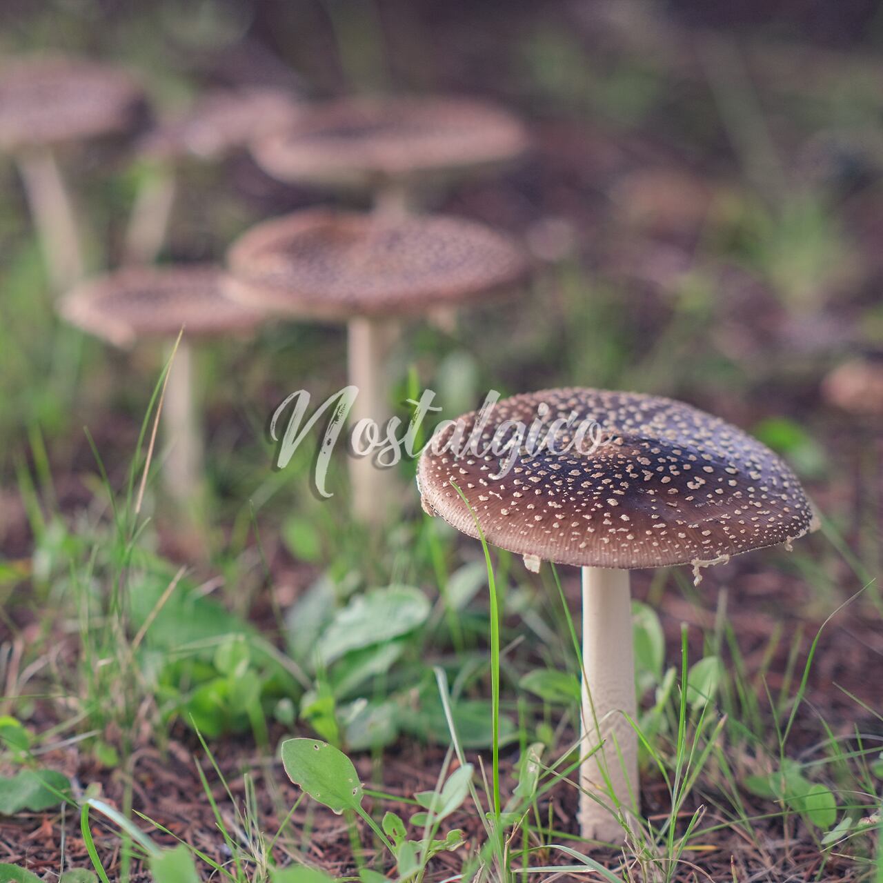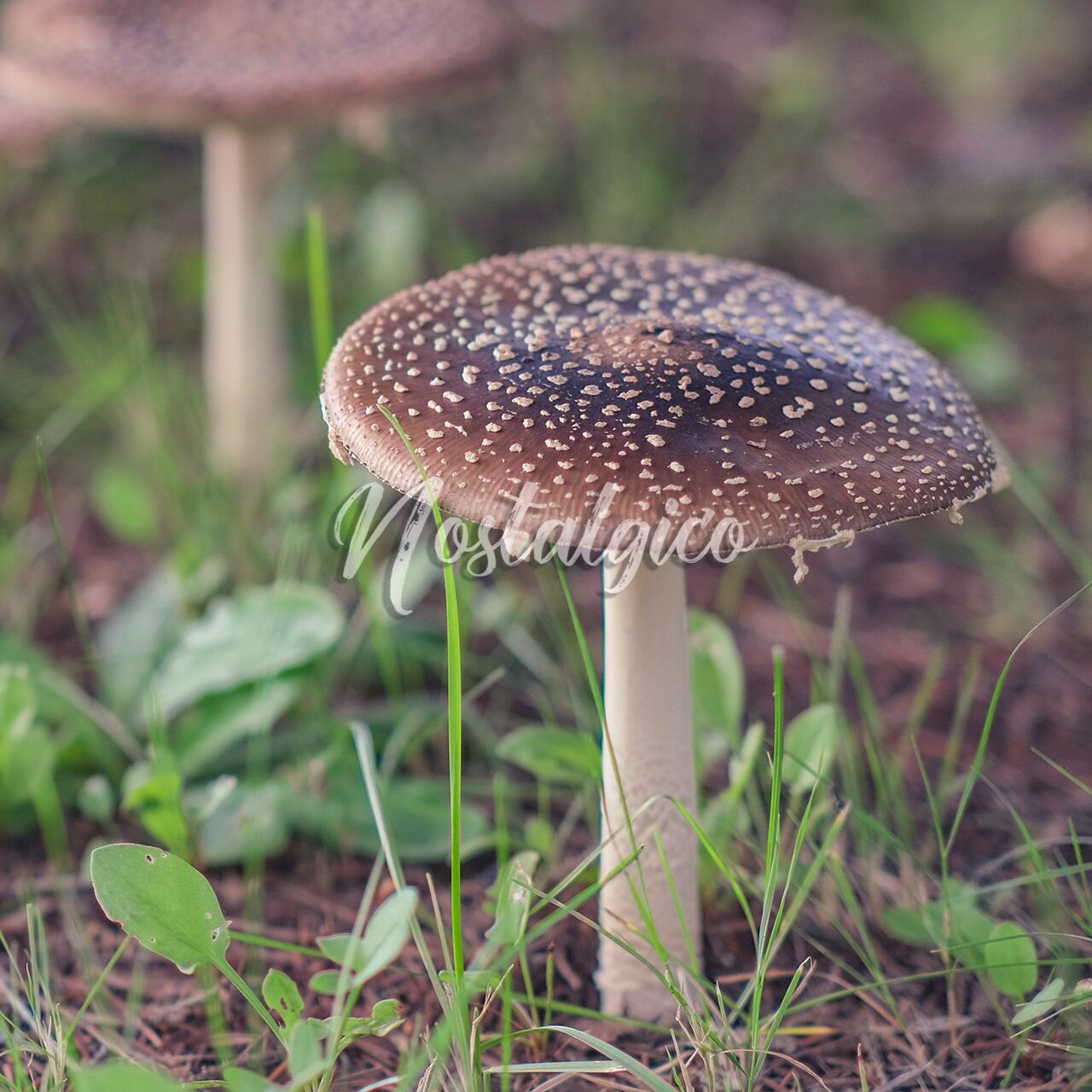 木陰にひっそりと生えているキノコの写真です。季節は秋です。
