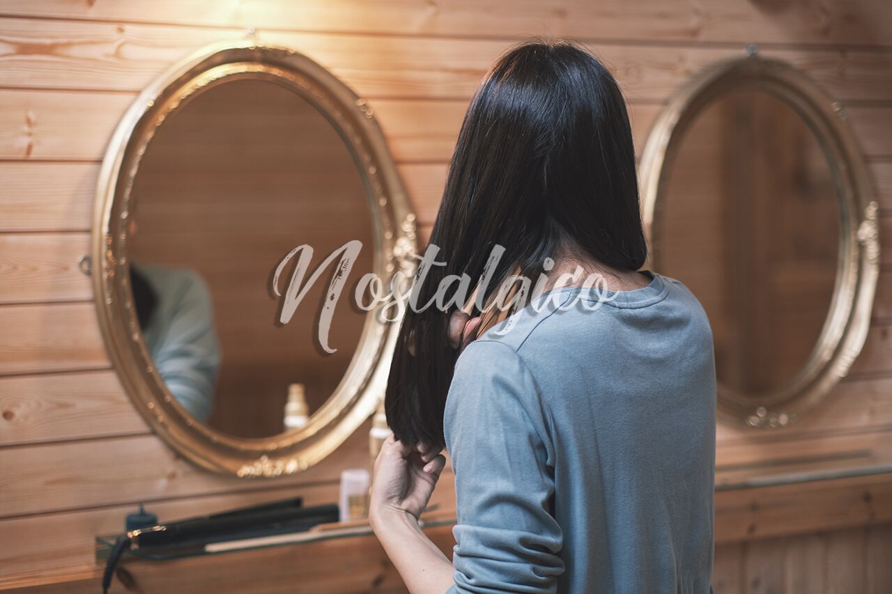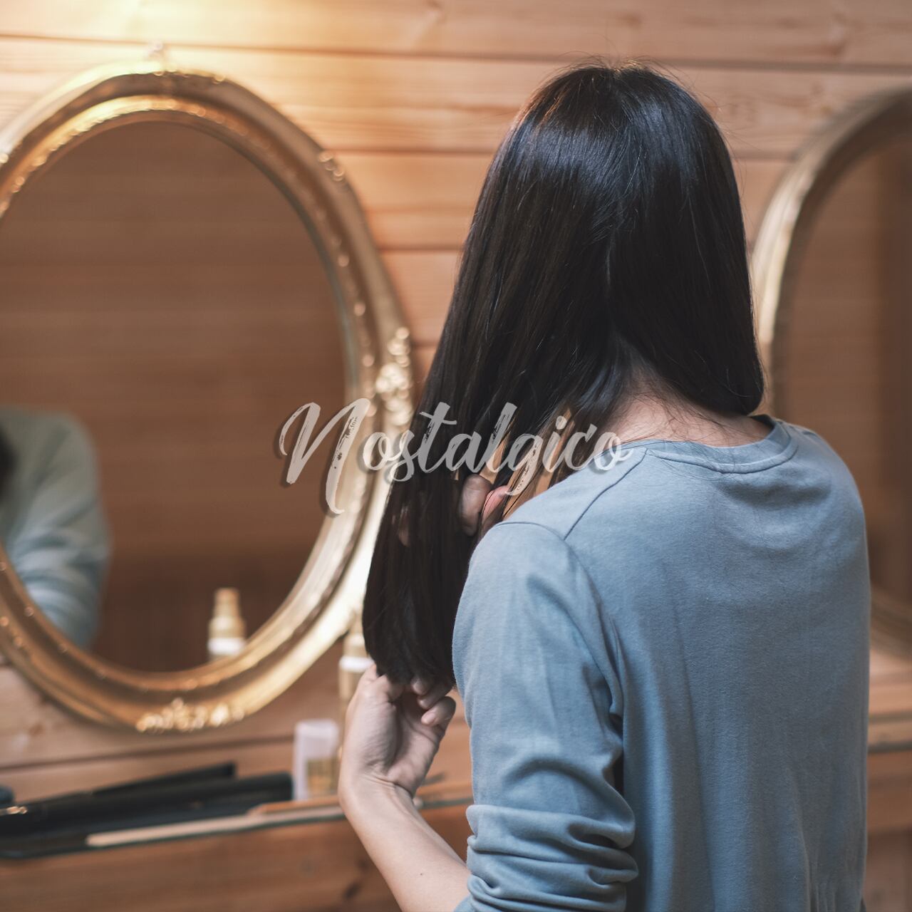 朝にヘアトリートメントをする女性 | Nostalgico(ノスタルジコ)写真素材販売ショップ