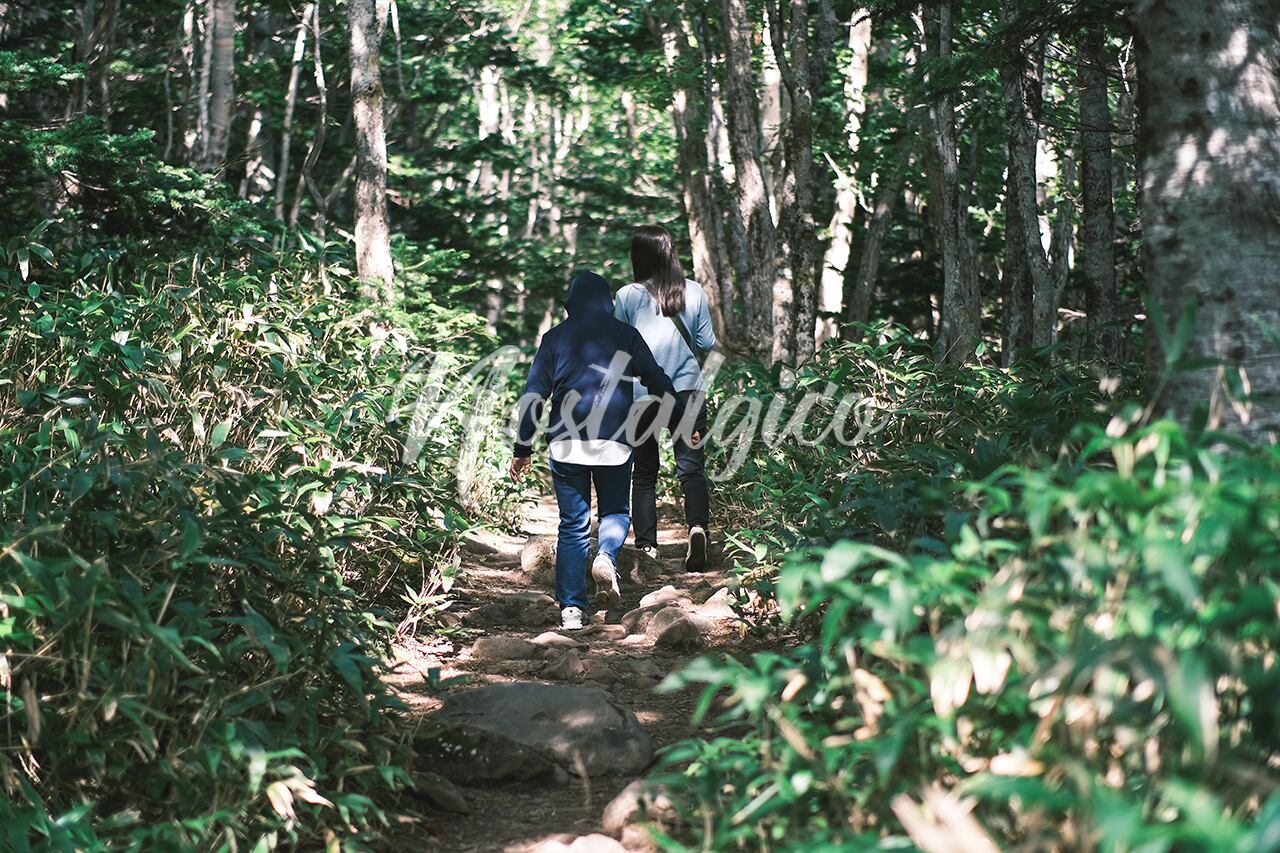 森の散策路を歩く2人(北海道知床五湖)