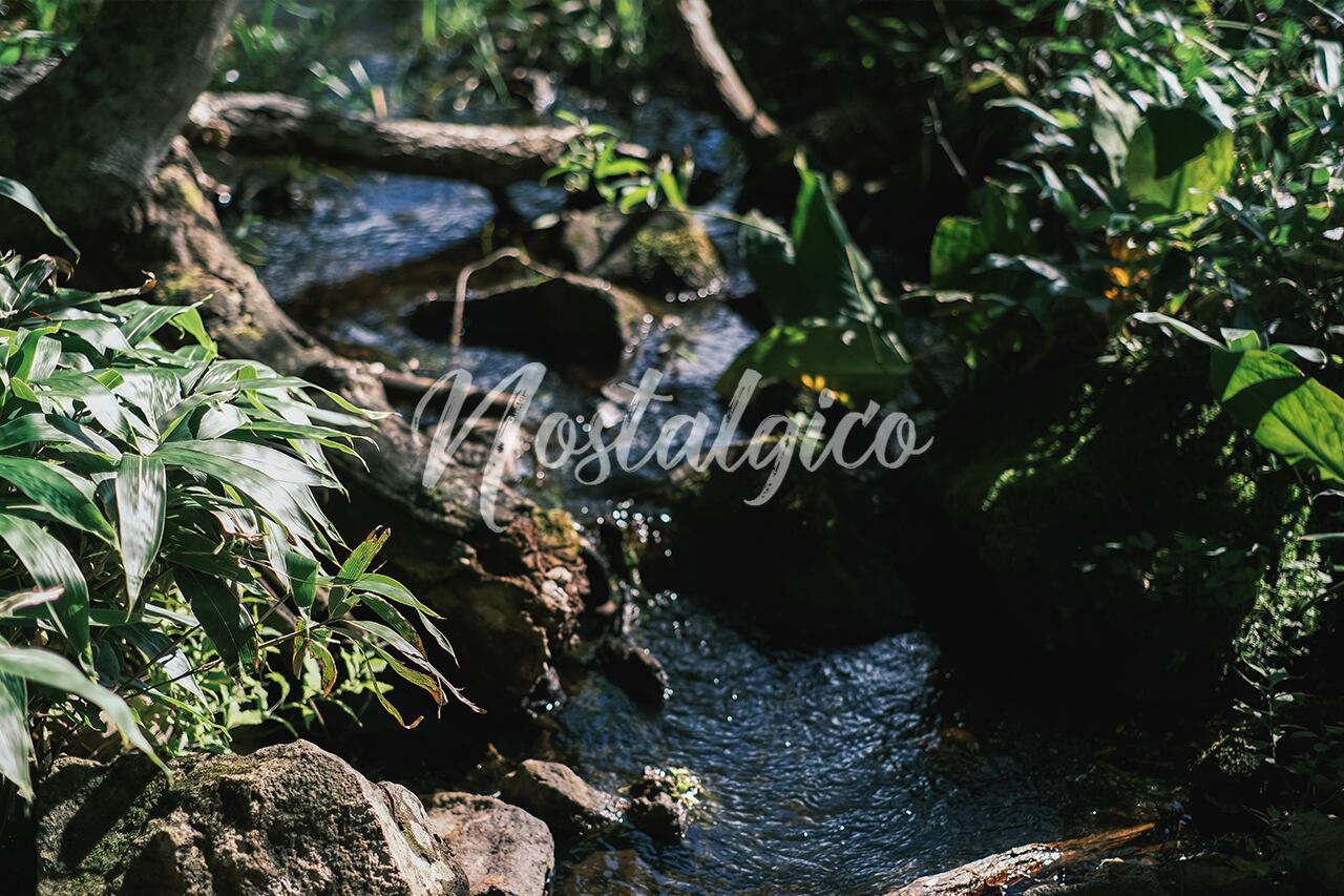 森の中の小川(北海道知床)の写真です。季節は夏・秋です。