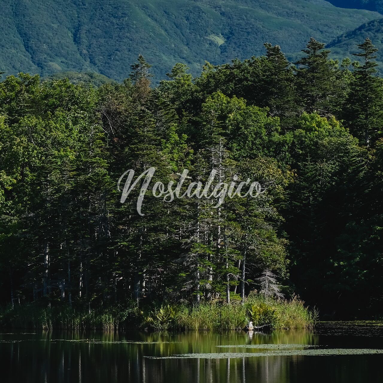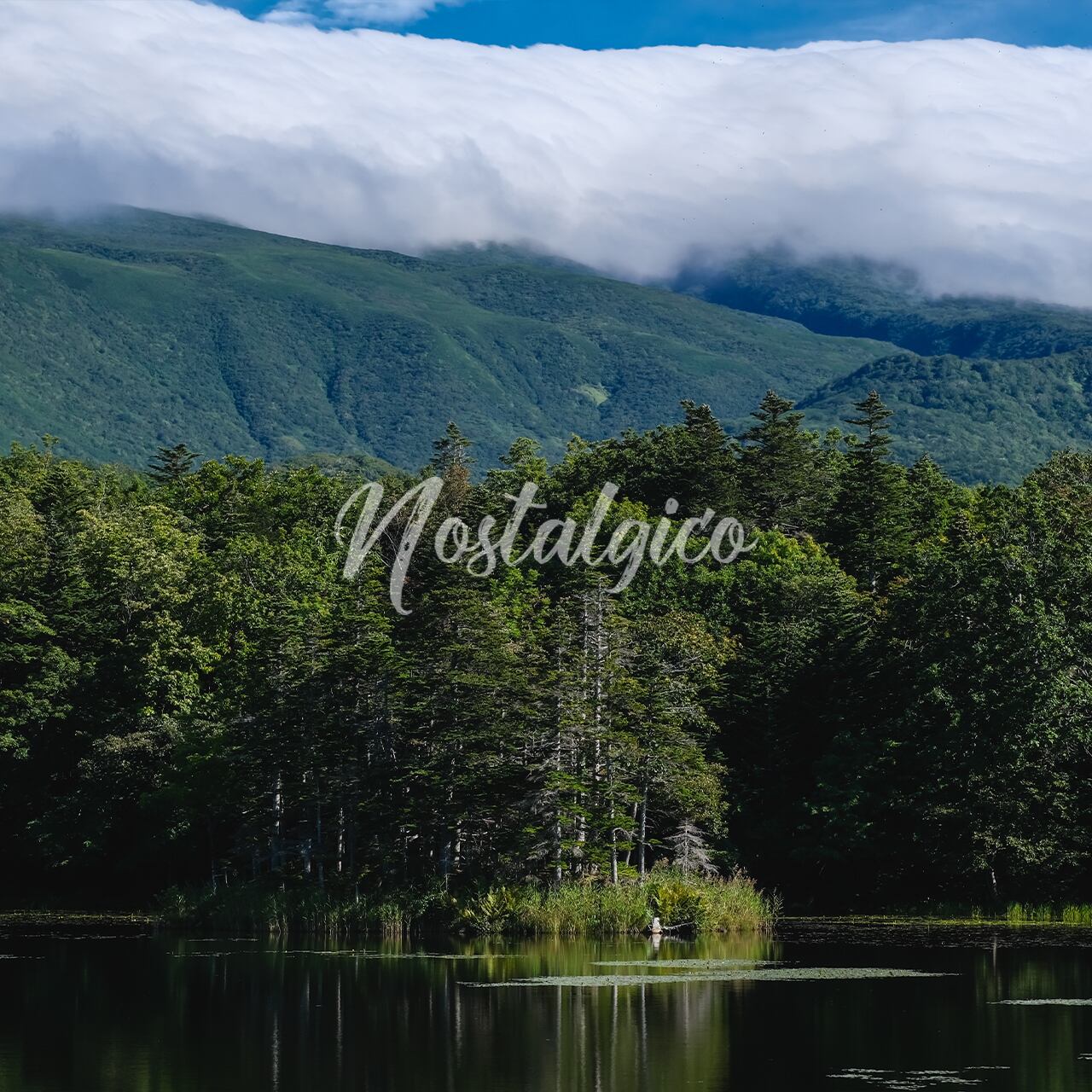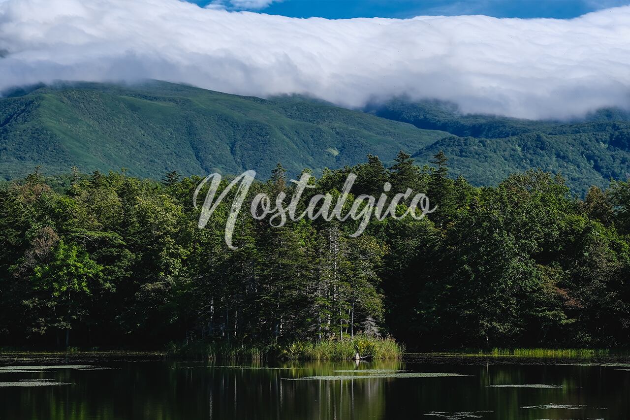 雄大な山と湖(北海道知床五湖の二湖)
