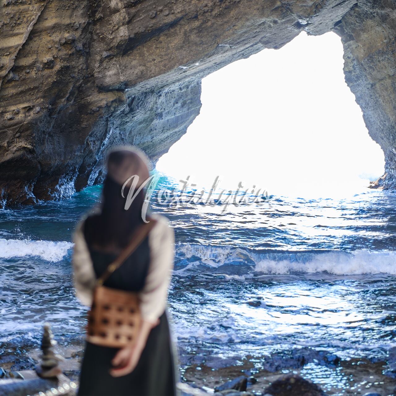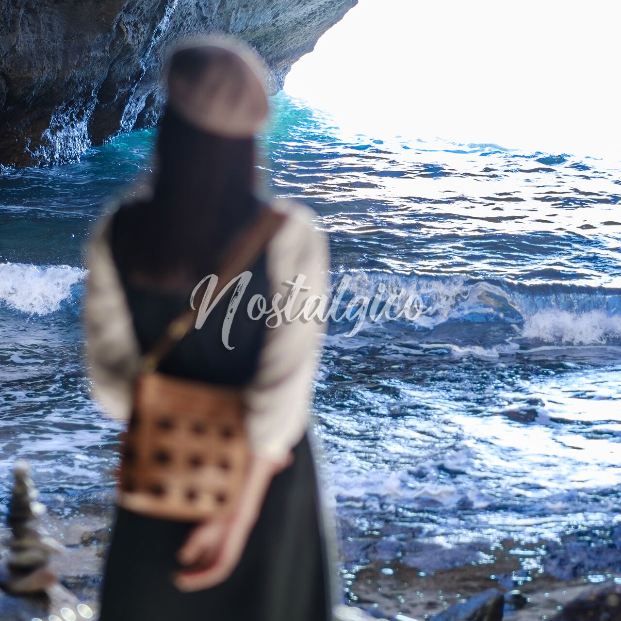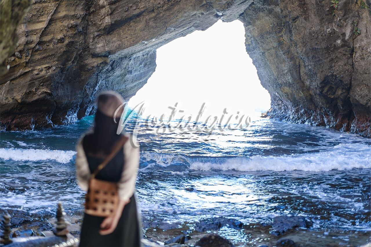 岩の割れ目から差し込んでくる光が海の色を幻想的なものにしています。