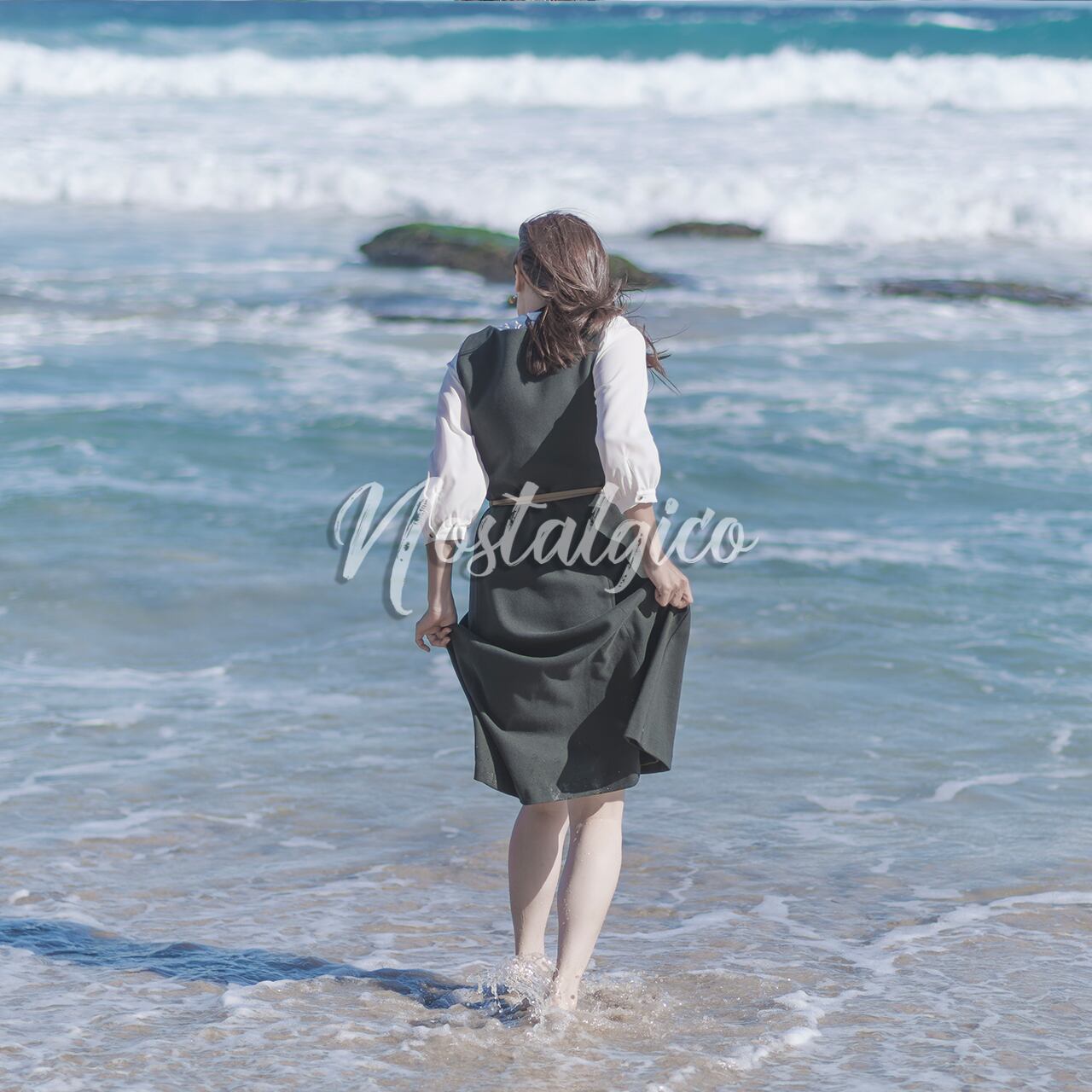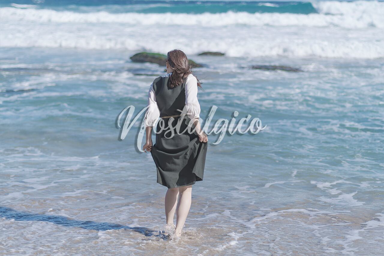 この写真は、秋の季節に綺麗な海の波打ち際を裸足で遊ぶロングヘアの女性の姿を捉えたものです。波の音や海風を感じられるかのようなリアリティーのある写真素材で、波打ち際を裸足で遊ぶ女性の姿からは喜びや明るい心が伝わってきます。元気いっぱいの女性の姿を見ると自然と笑顔がこぼれます。