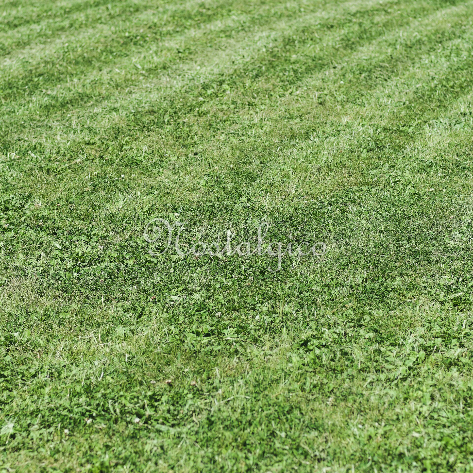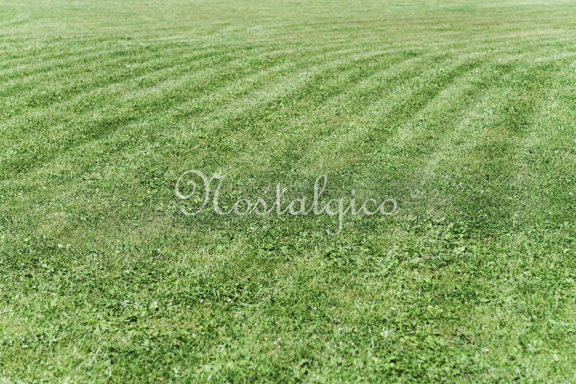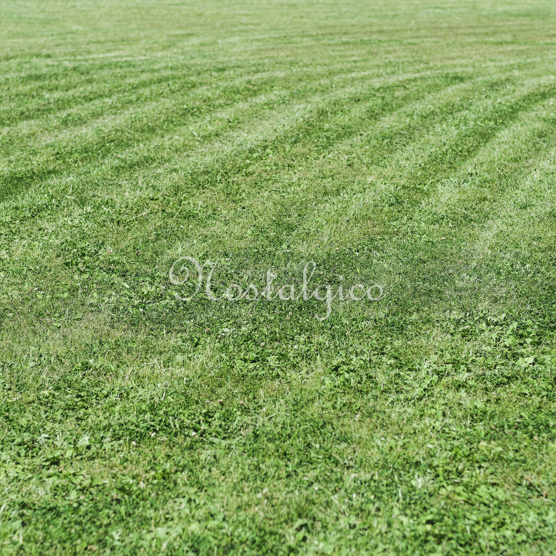 この写真素材は、美しい整然とした刈り跡が残る芝生の風景を捉えたものです。