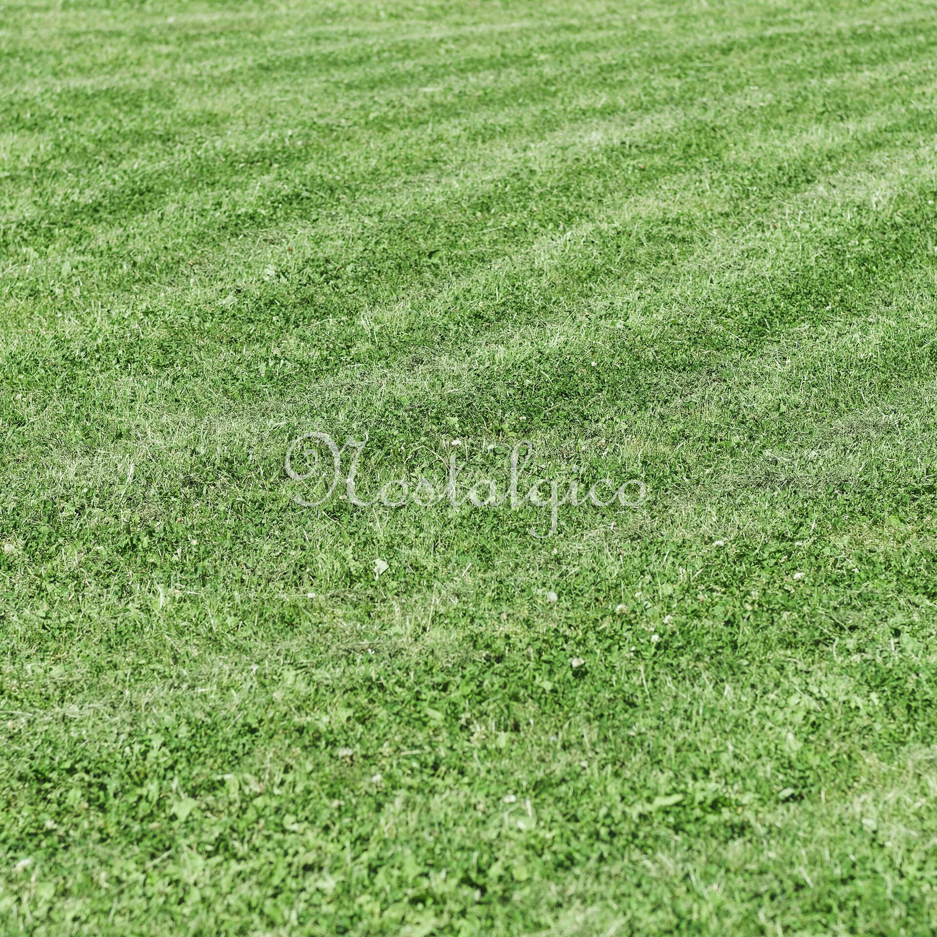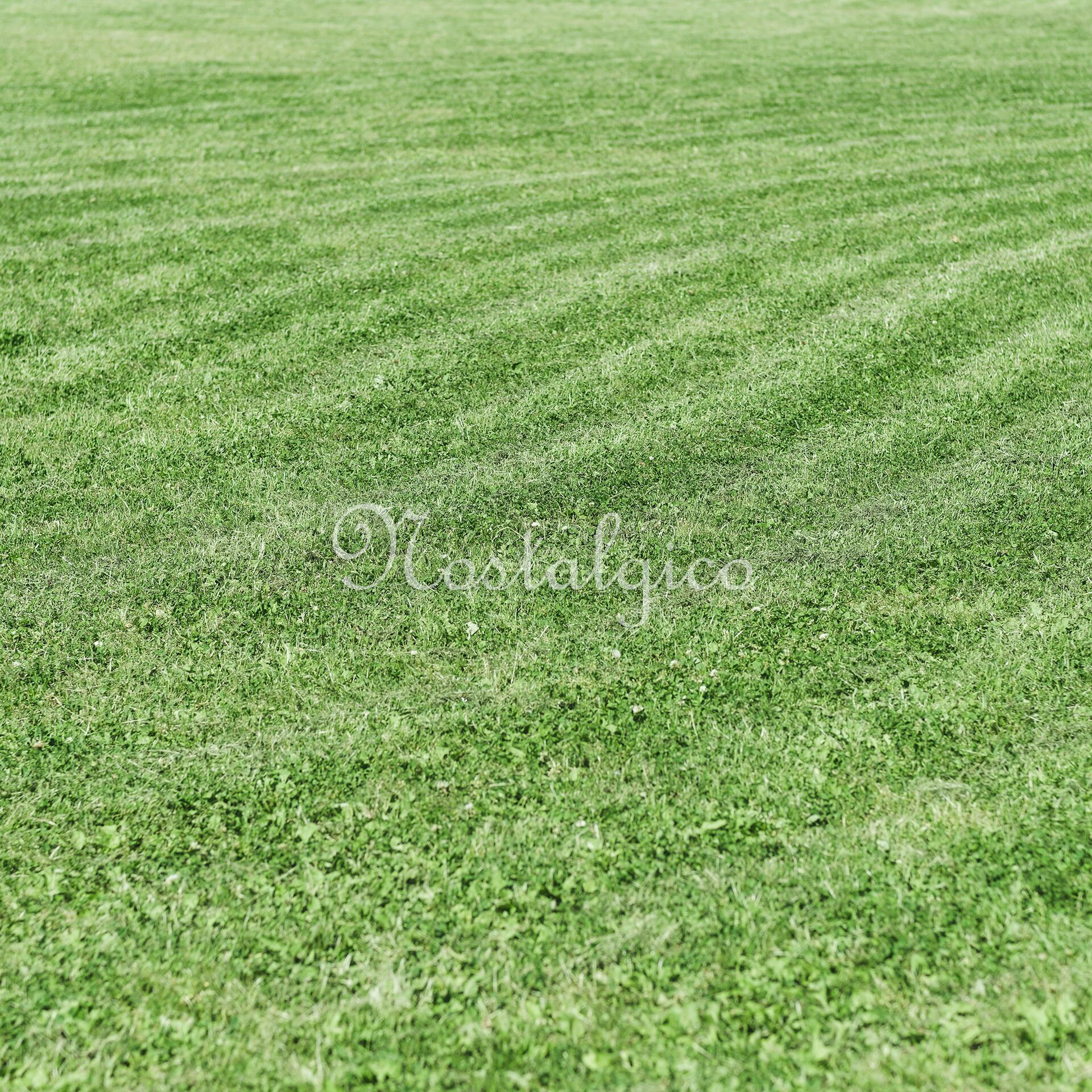 この写真素材は、美しい整然とした刈り跡が残る芝生の風景を捉えたものです。