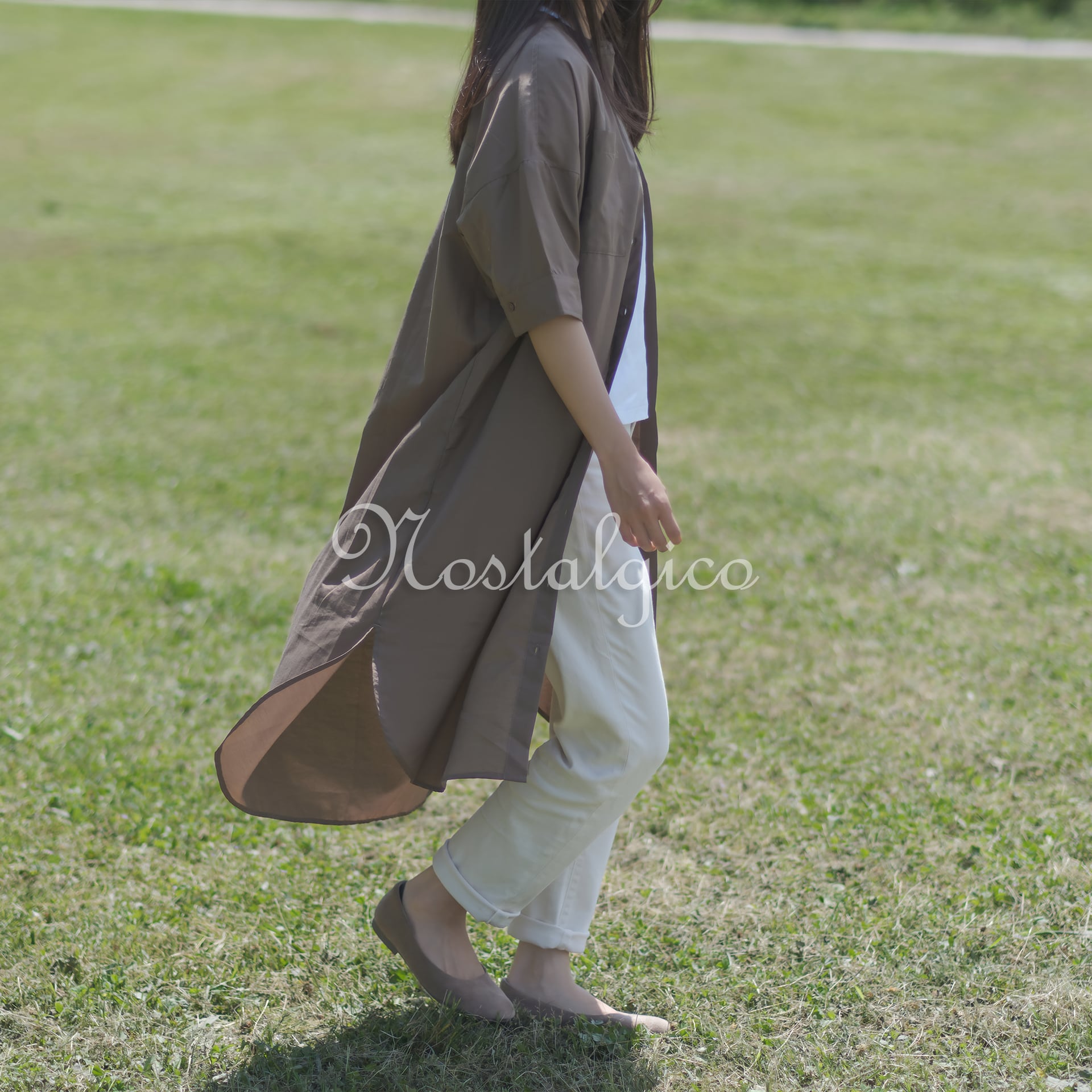 薄手の無地ワンピースを羽織った女性の写真素材は、シンプルなファッションスタイルを表現した魅力的なアセットです。ワンピースはシンプルなデザインで、薄手の生地が軽やかな印象を与えます。