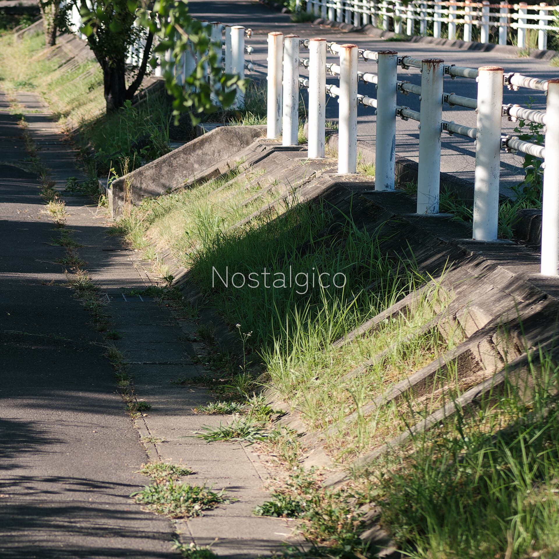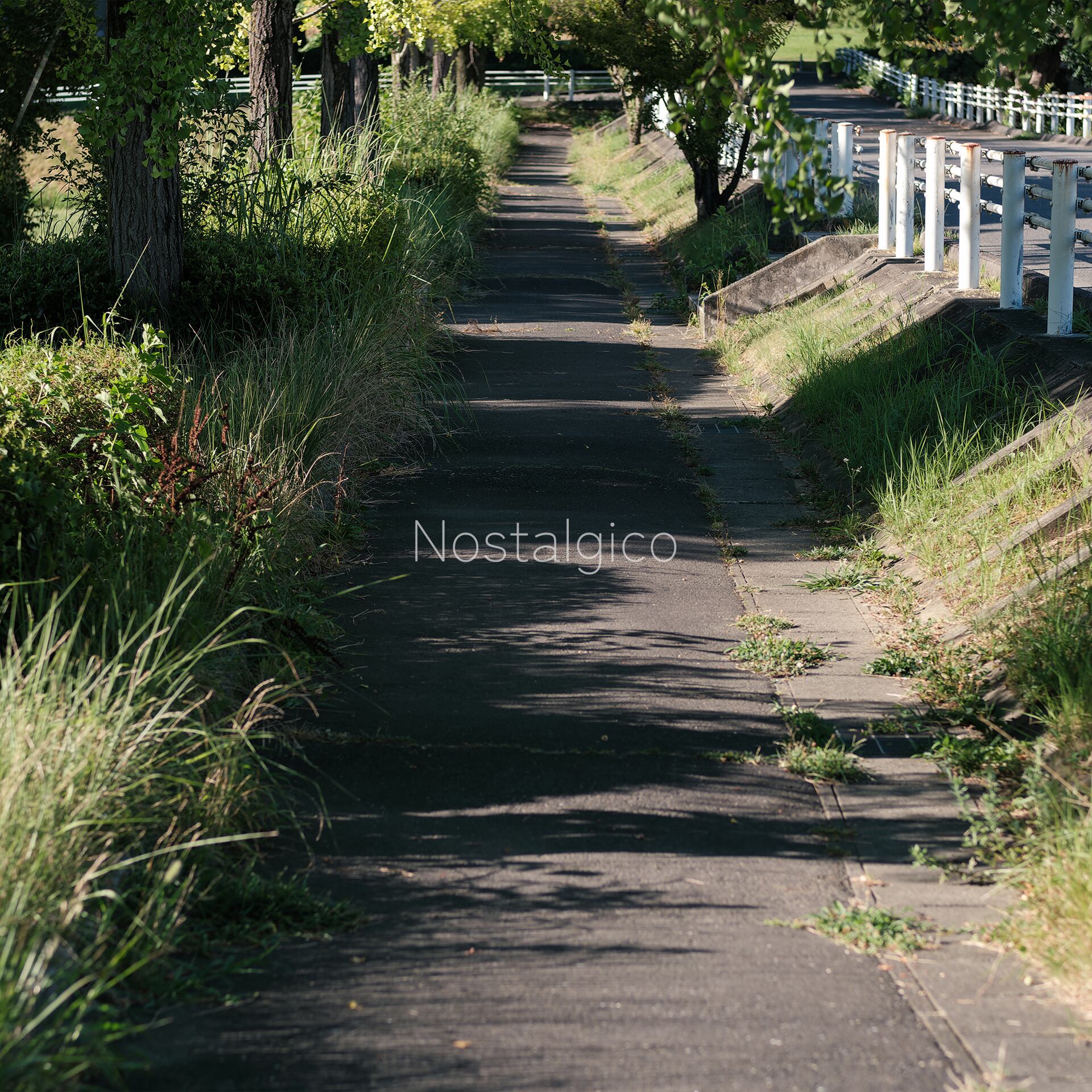 夕暮れの散歩道の風景写真です。