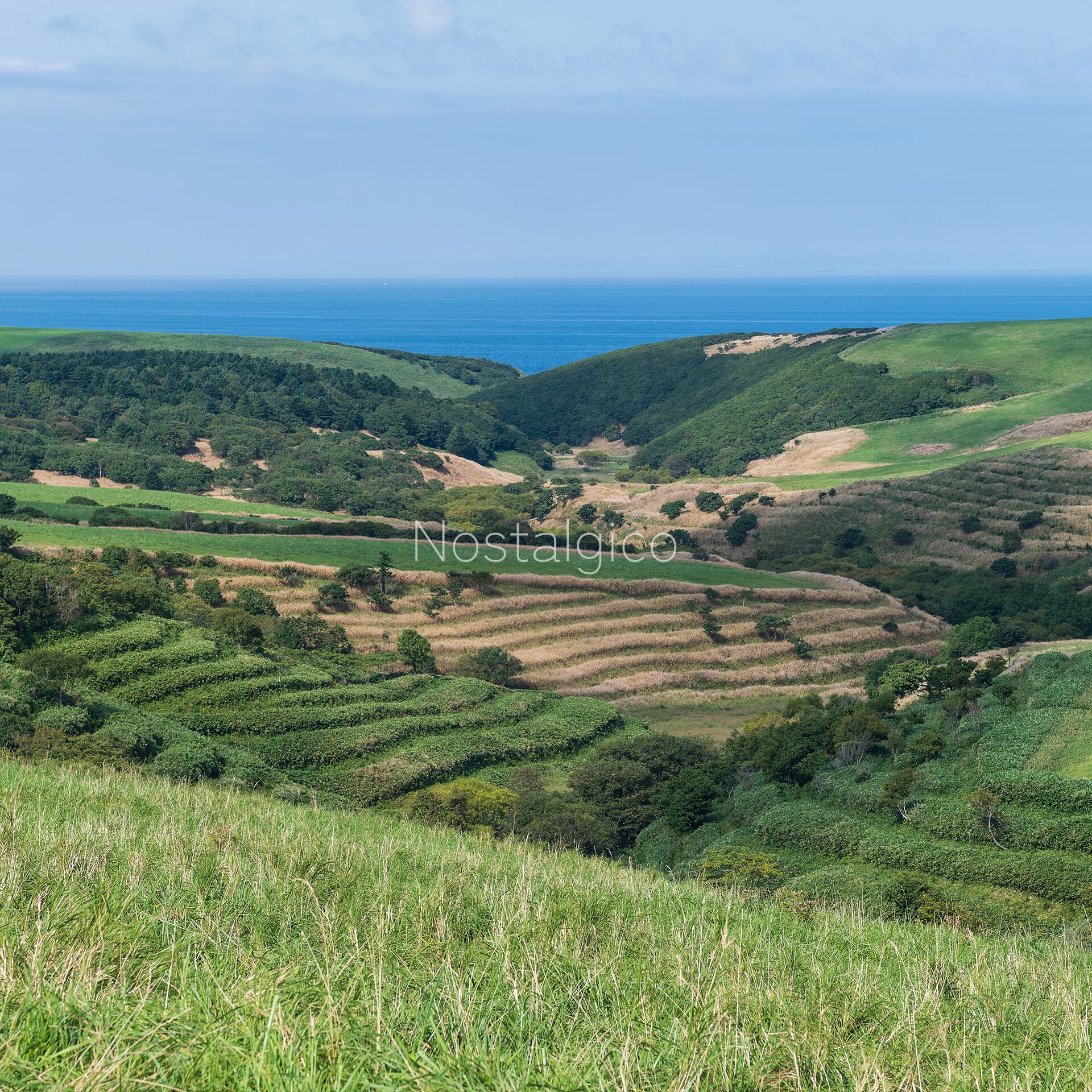 宗谷丘陵の写真素材です。この丘陵地帯は「周氷河地形」と呼ばれる地形で、稜線が丸みを帯びた美しい景観は北海道遺産にも指定されています。