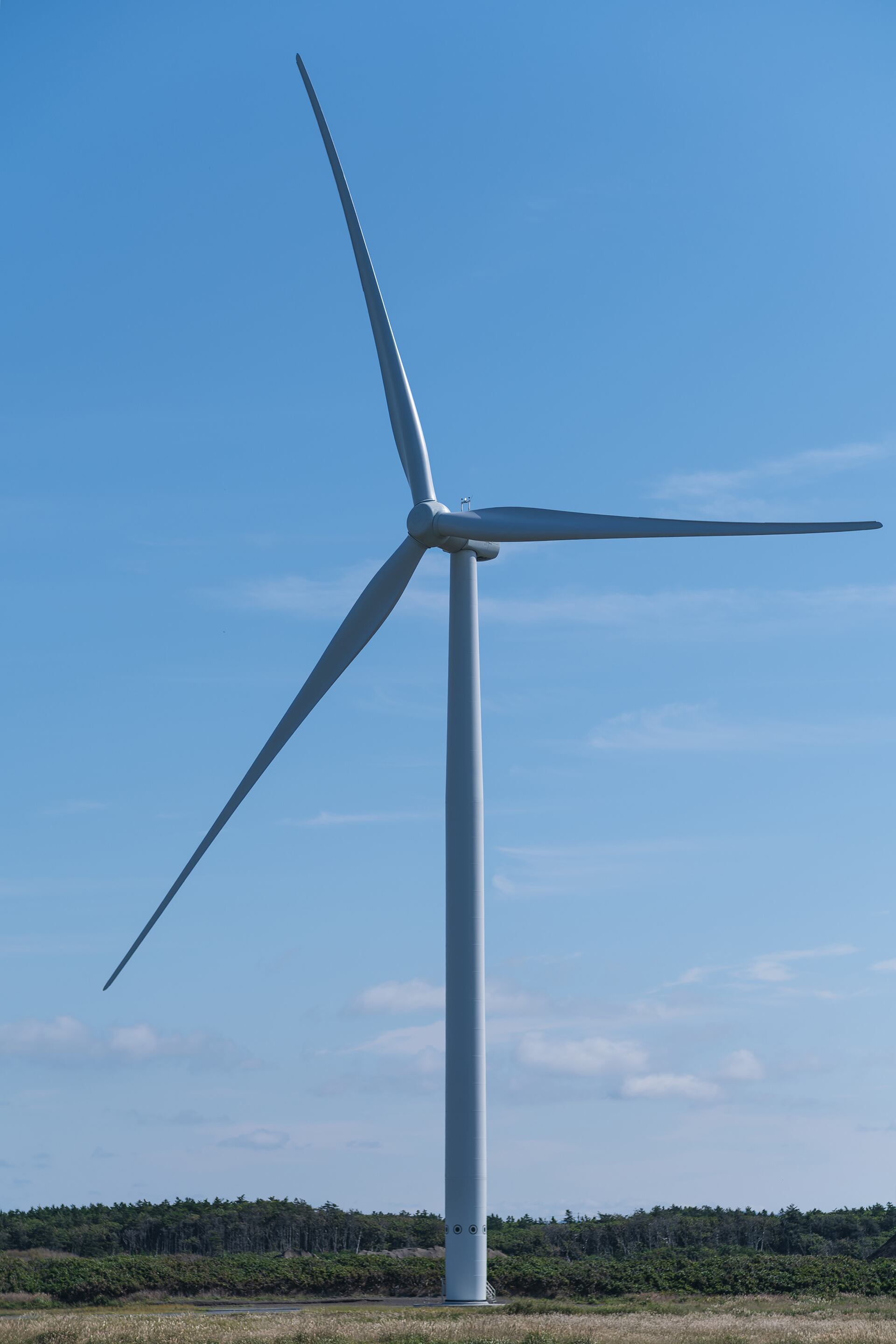 青空の中でゆっくりと回転する大きな風車からはエネルギーを感じることができます。
