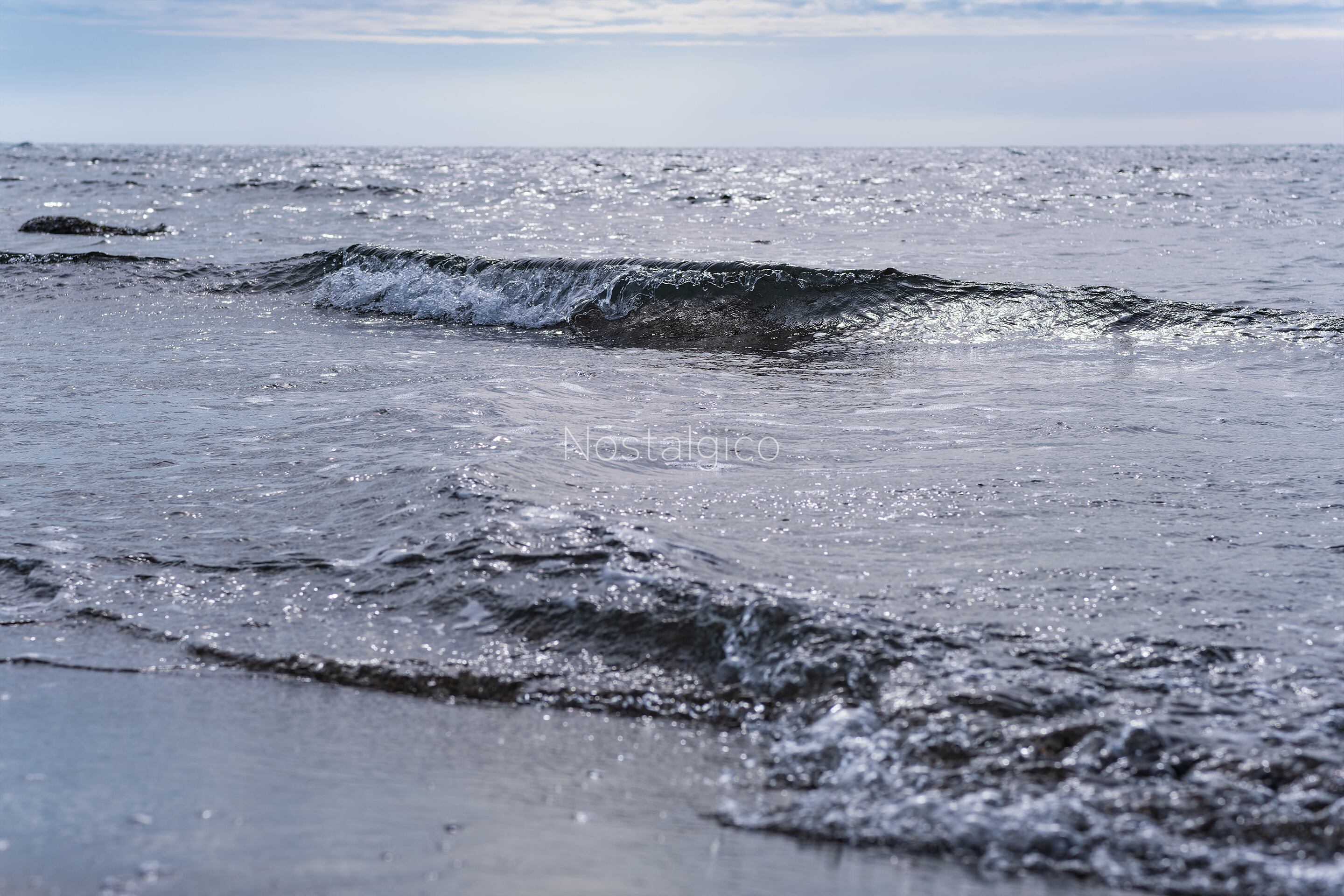 お昼の時間帯に太陽の光でキラキラ輝く海の波を撮りました。