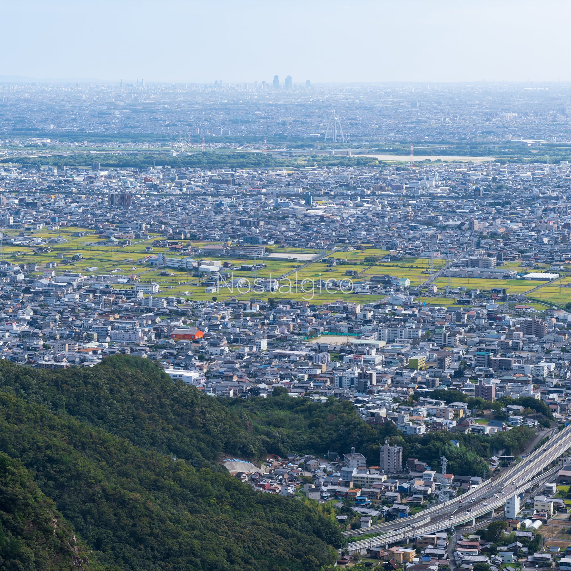 遠くの地平線には名古屋の高層ビルが立ち並んでいるのが見えます。