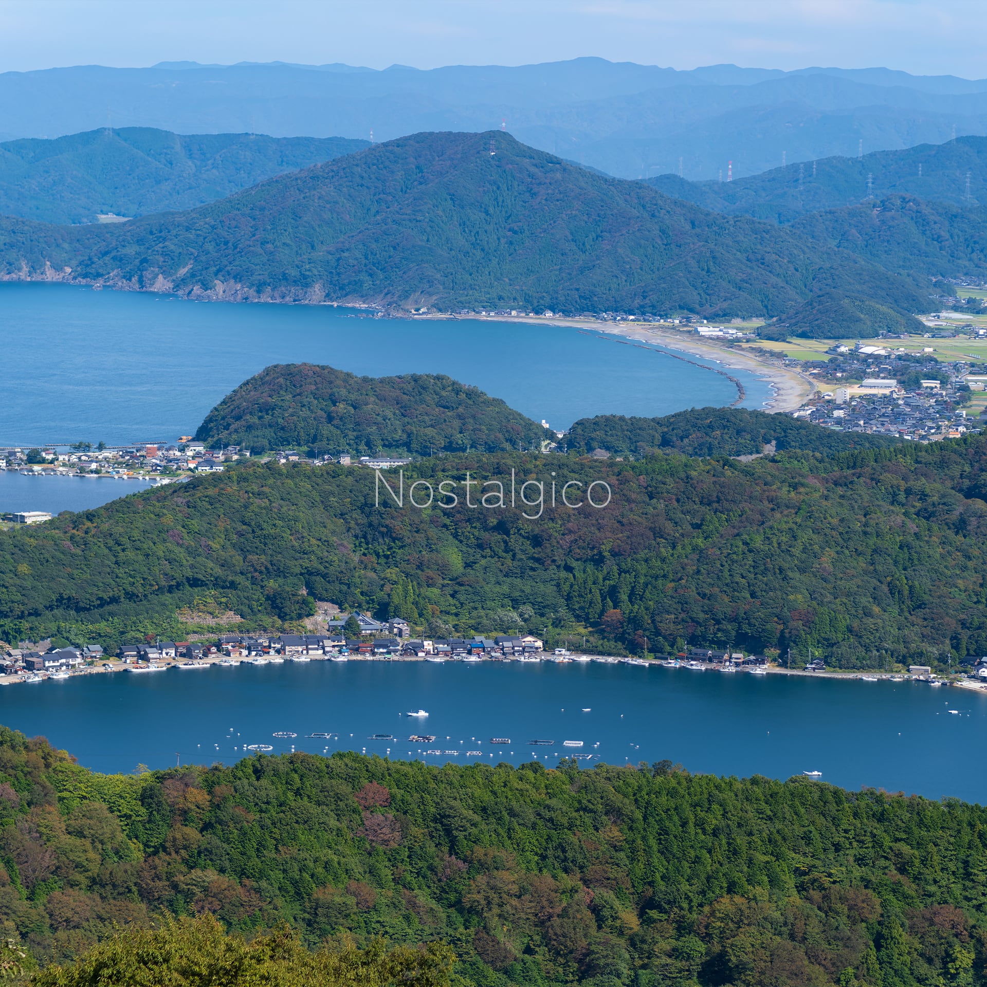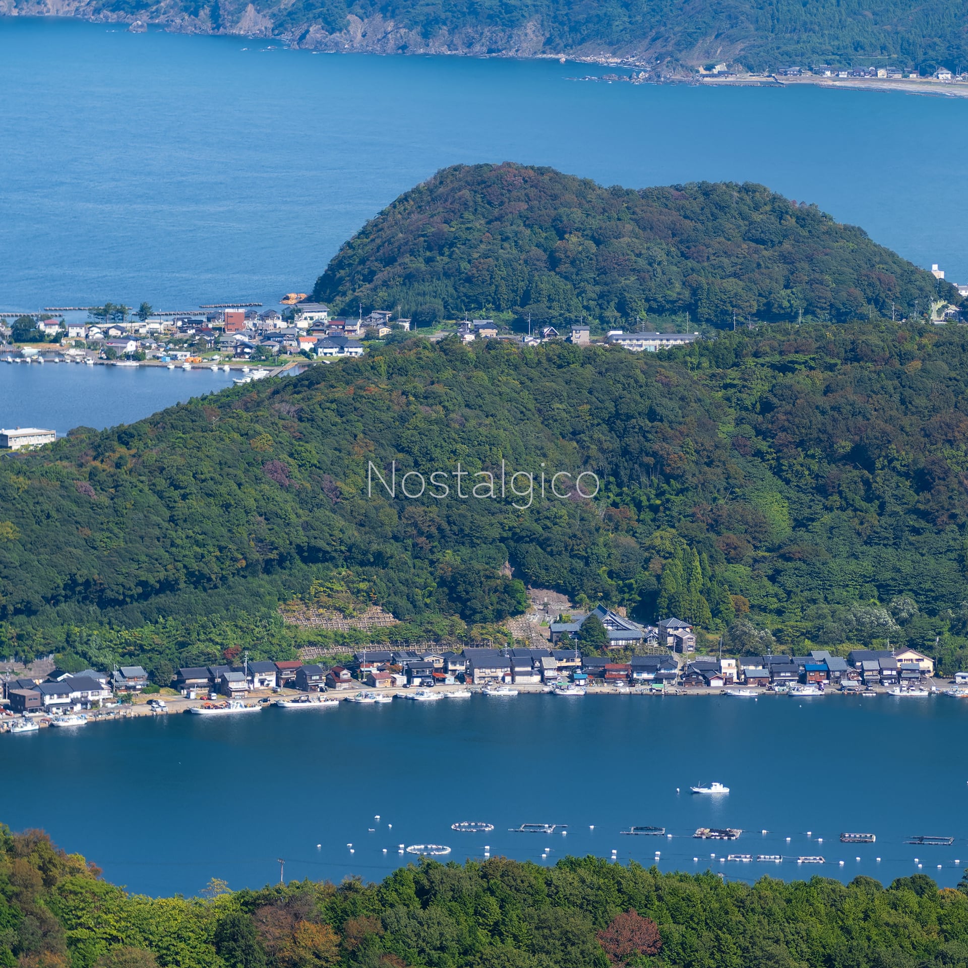 福井県の美しい自然風景を上空から捉えた写真素材です。