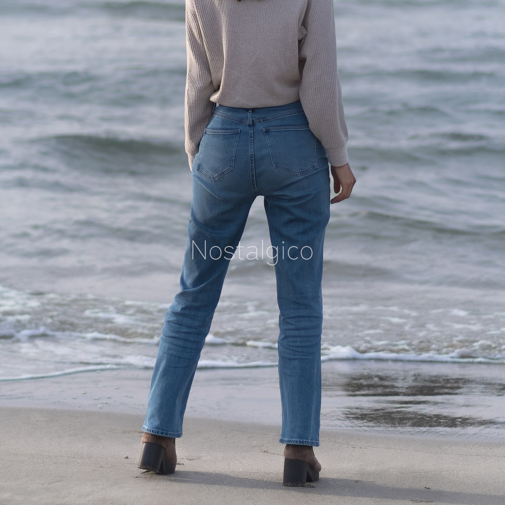 フレアジーンズをはいたロングヘアの女性が秋の海辺を歩いている写真素材です。フレアジーンズのおしゃれで軽やかな雰囲気が伝わる一枚です。フレアジーンズをシンプルに着こなしているため、様々なシーンで写真素材として活用できます。