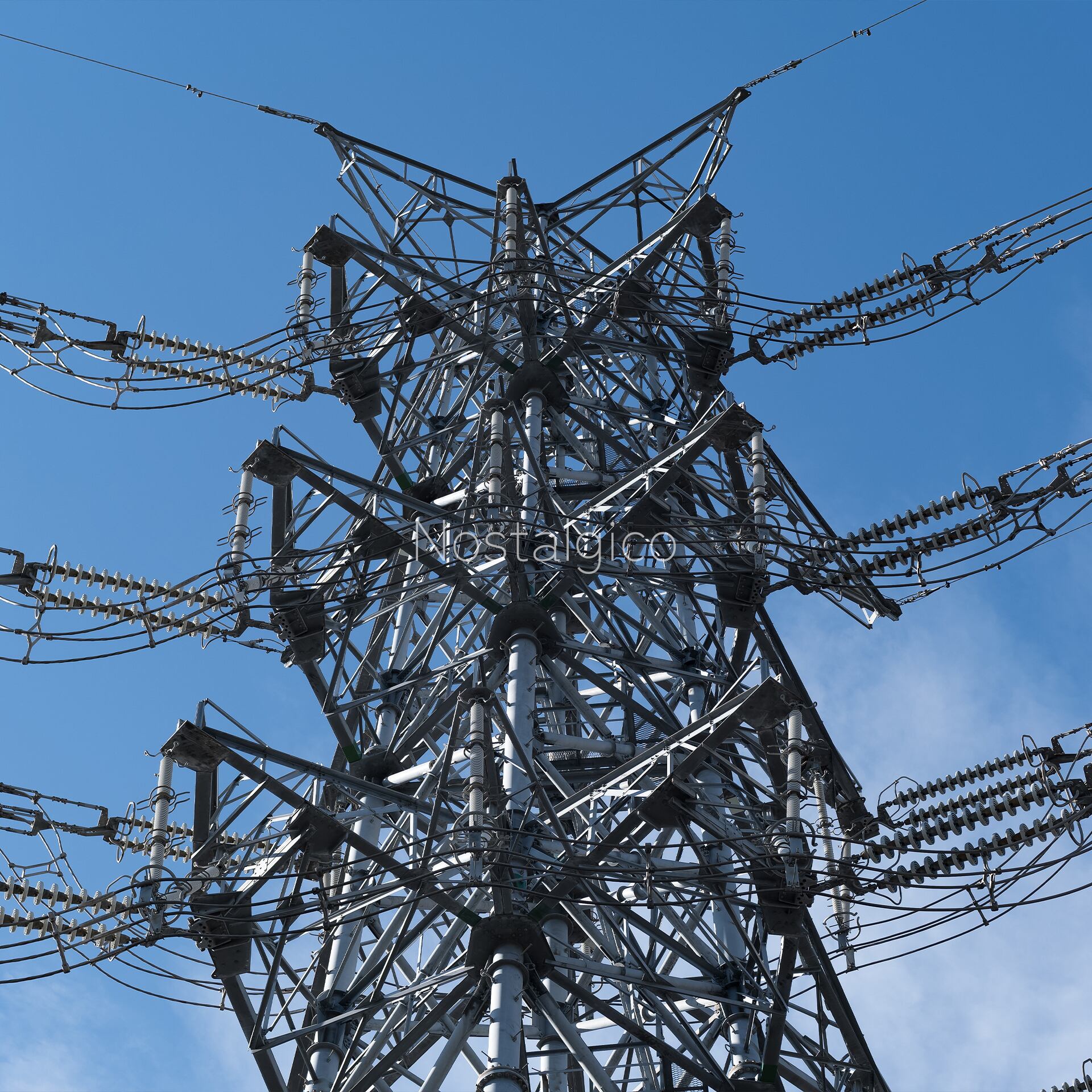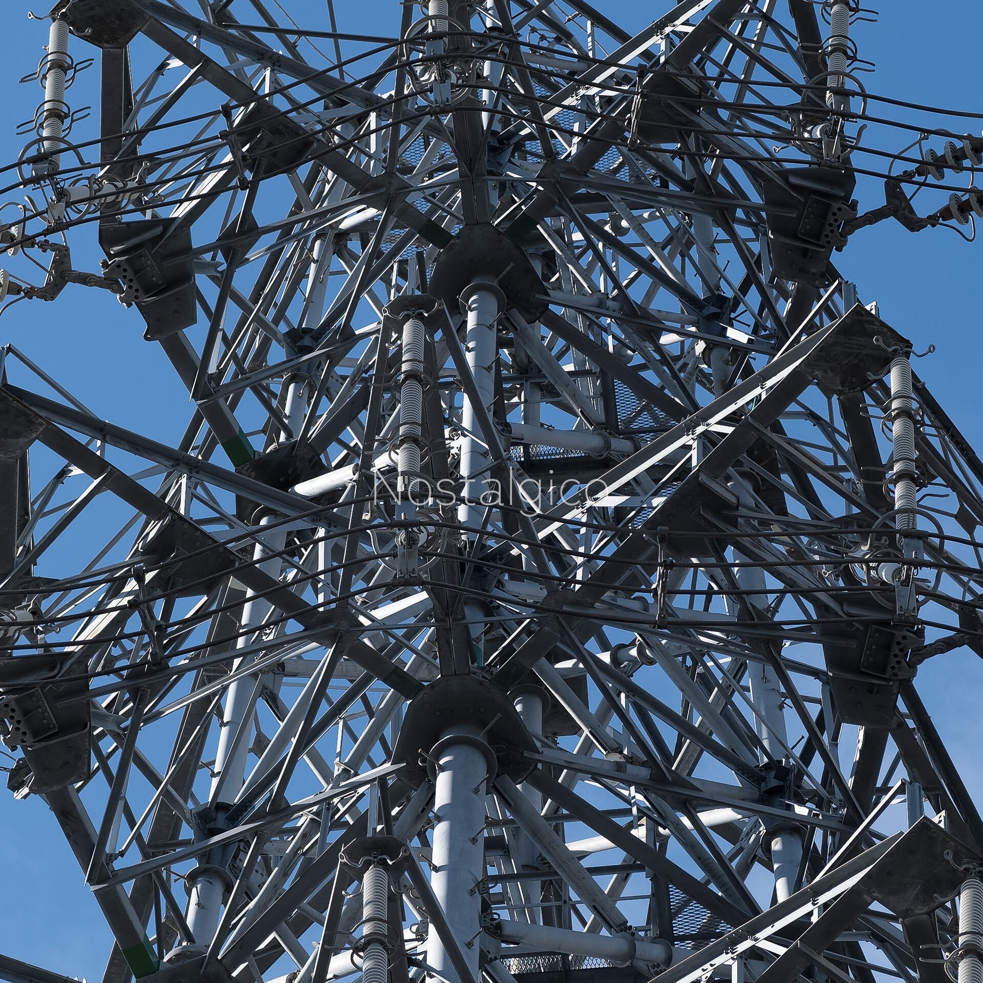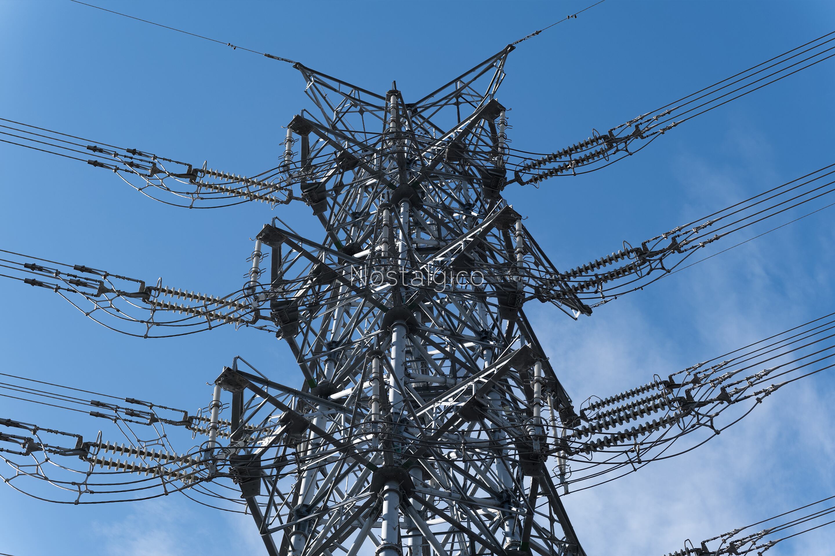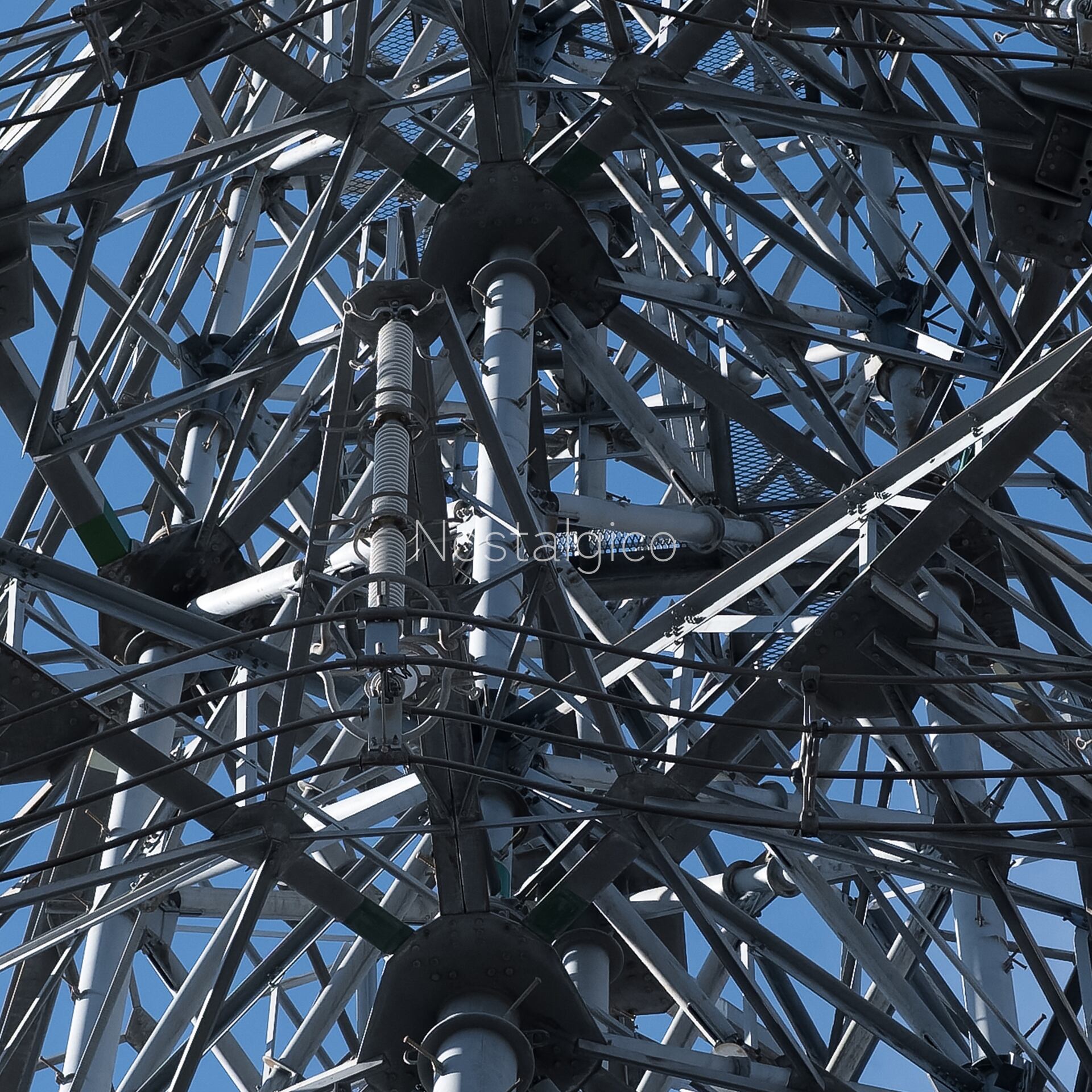 複雑な形をした鉄塔の写真です。複雑な形状とディテールと影が造形美を与えています。