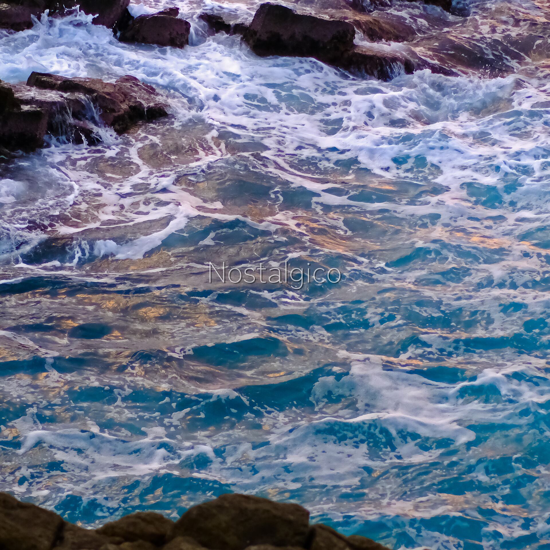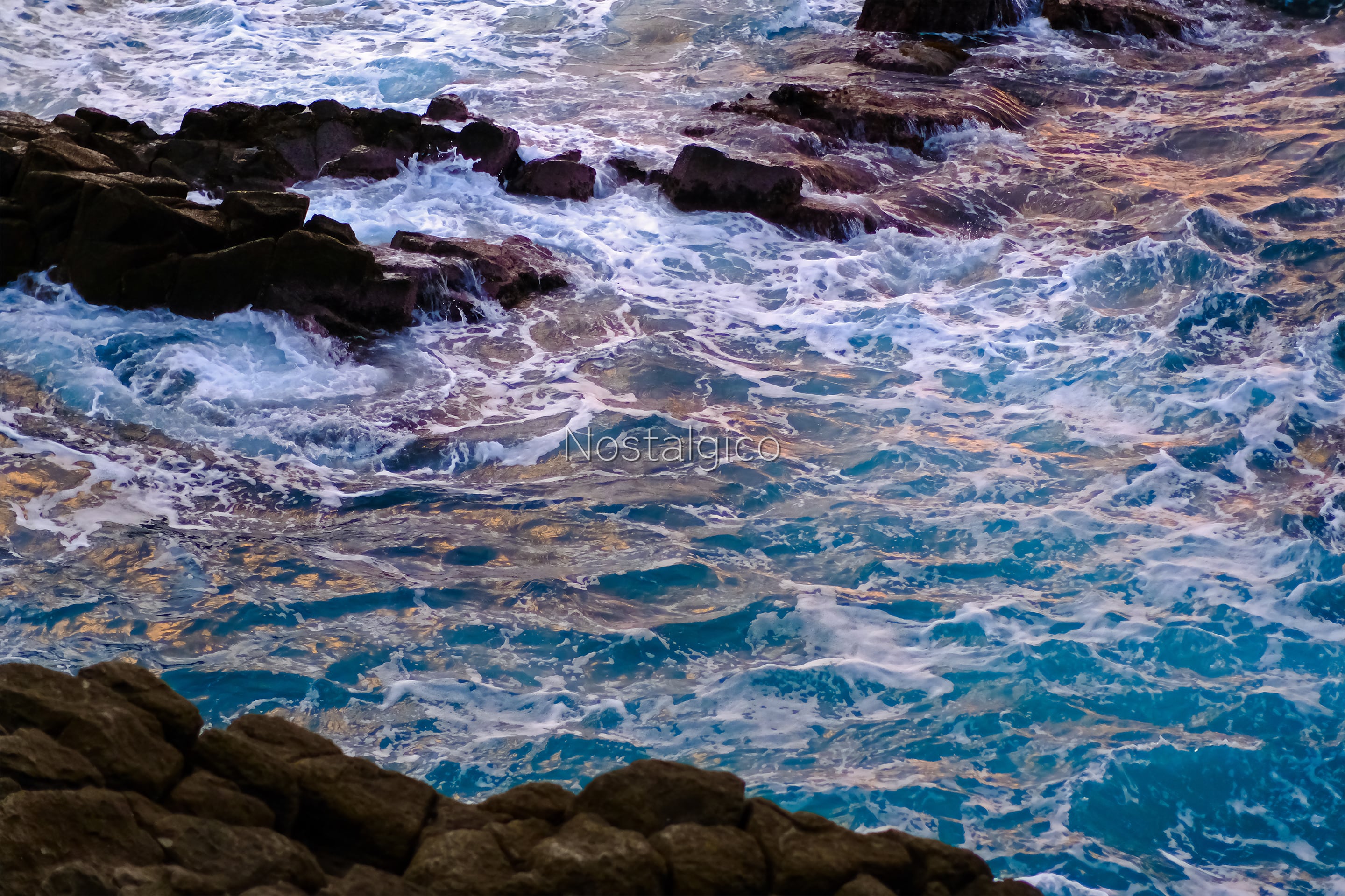 日が沈んだ直後の海面の色合いをとらえた写真です。様々な色が海に反射しています。
