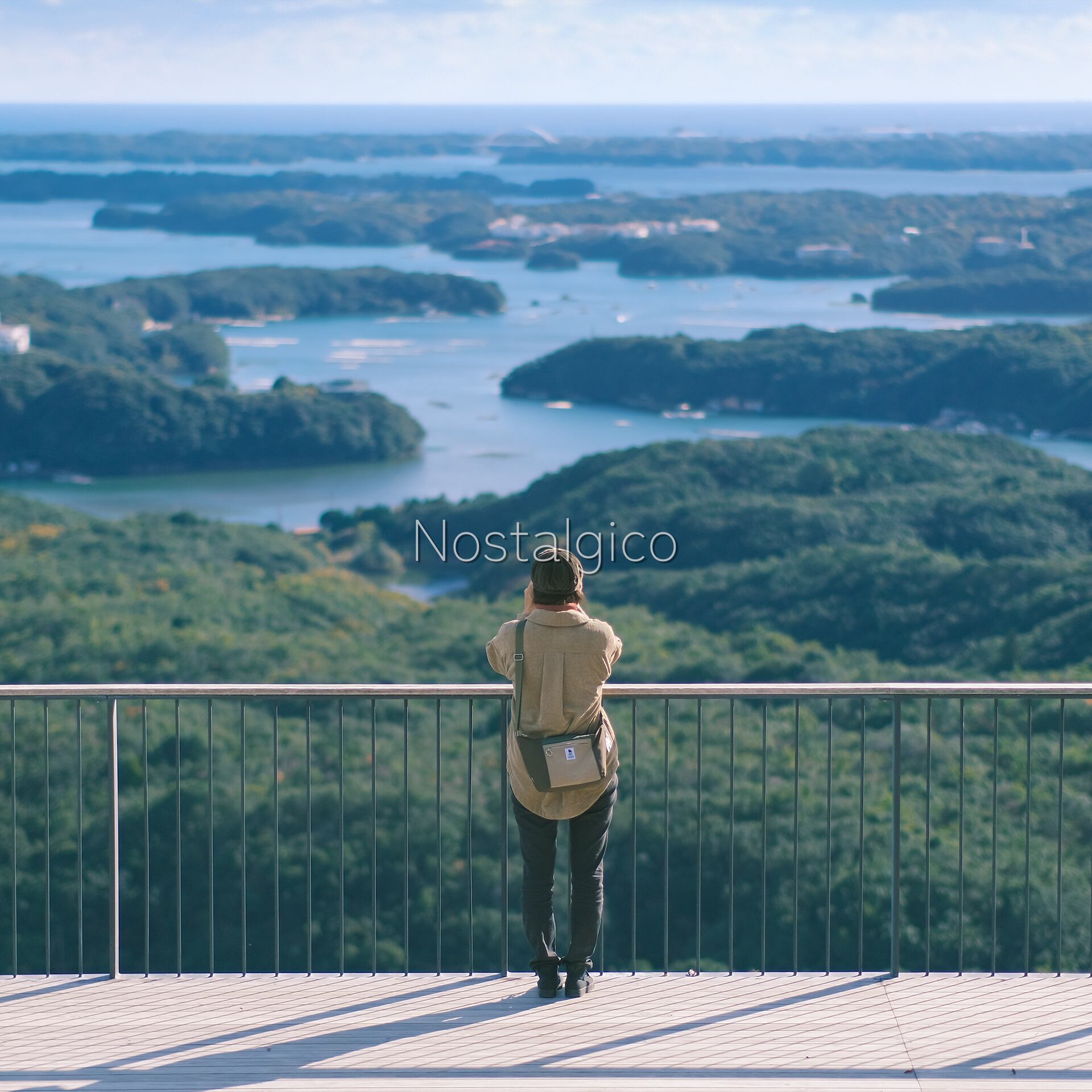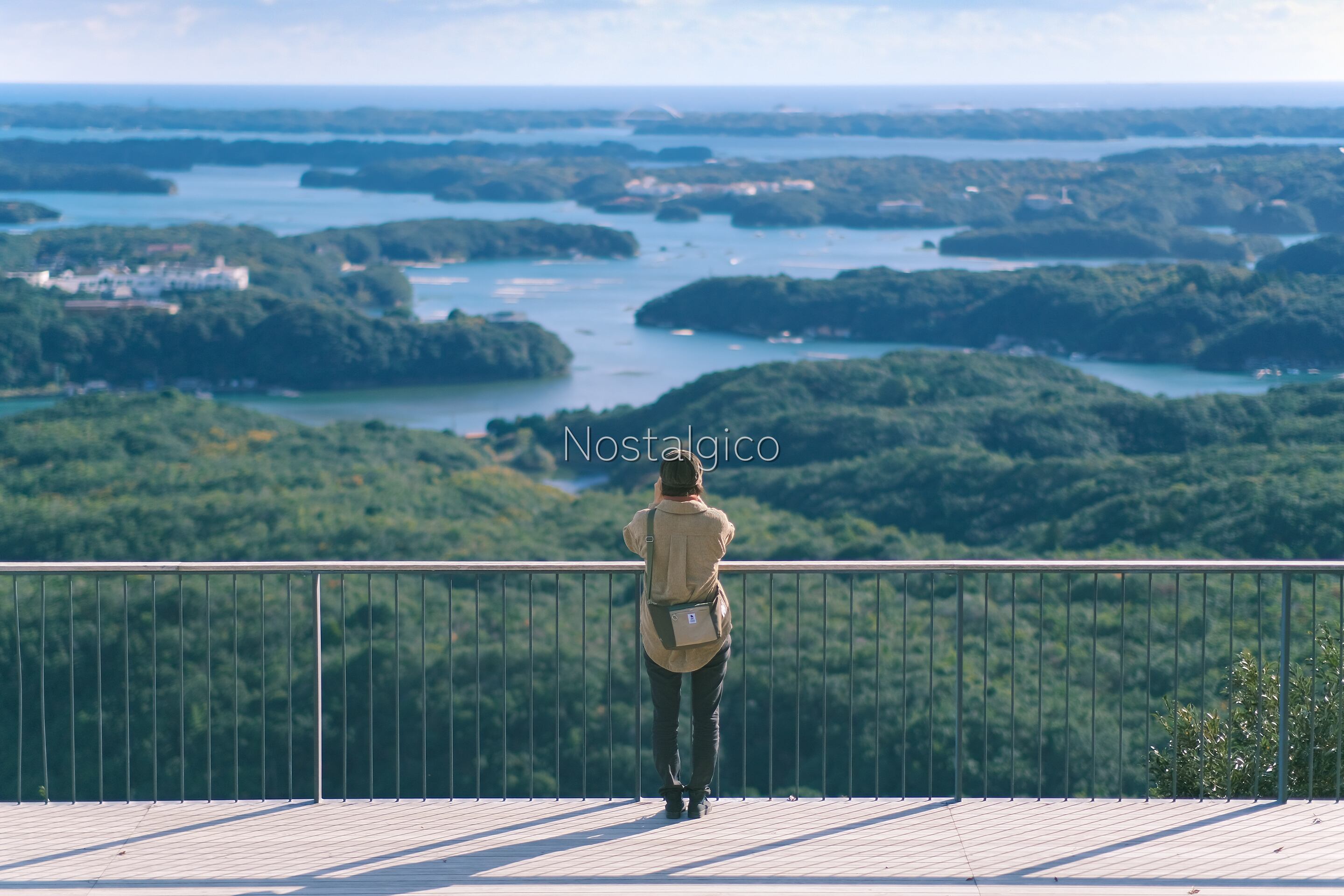 秋の海を展望台から眺める女性の写真です。三重県 横山展望台で撮影しました。