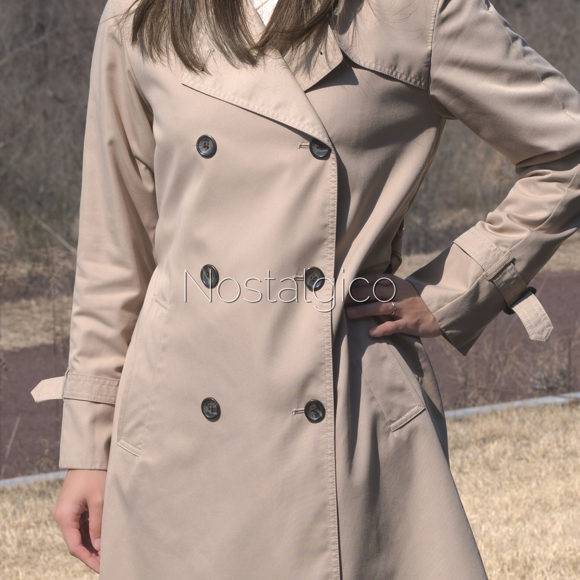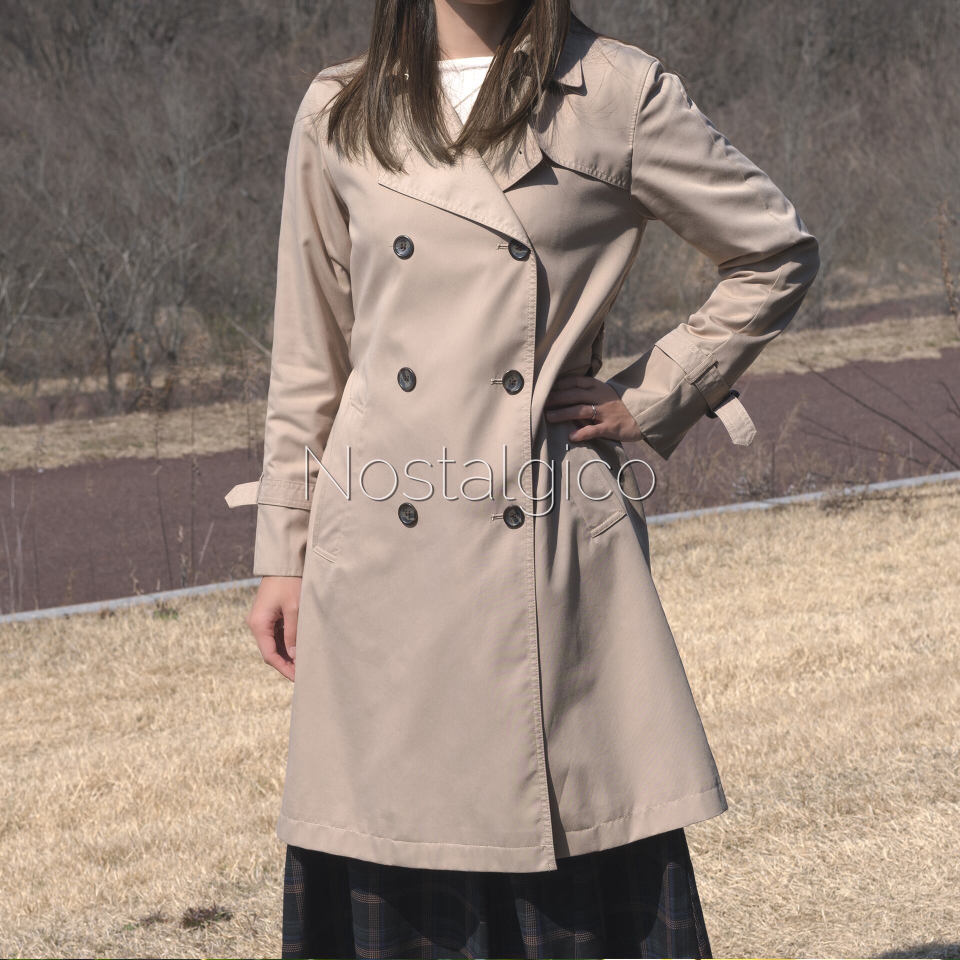 トレンチコートを着た女性の写真素材です。トレンチコートのクラシカルなデザインが、大人の女性らしさを引き立てています。