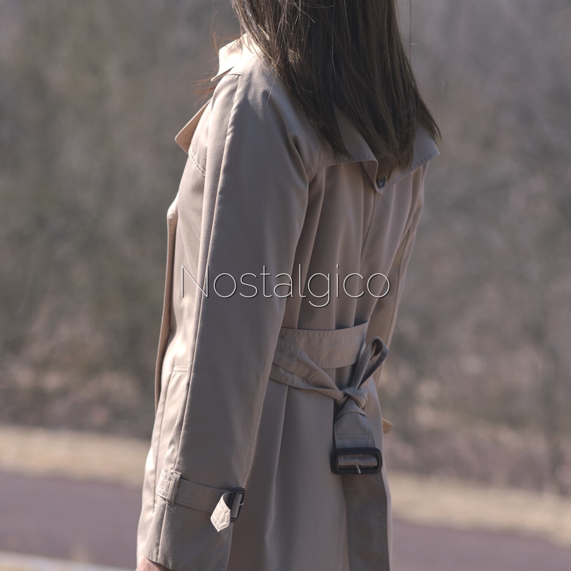 トレンチコートを着た女性の写真素材です。トレンチコートのクラシカルなデザインが、大人の女性らしさを引き立てています。