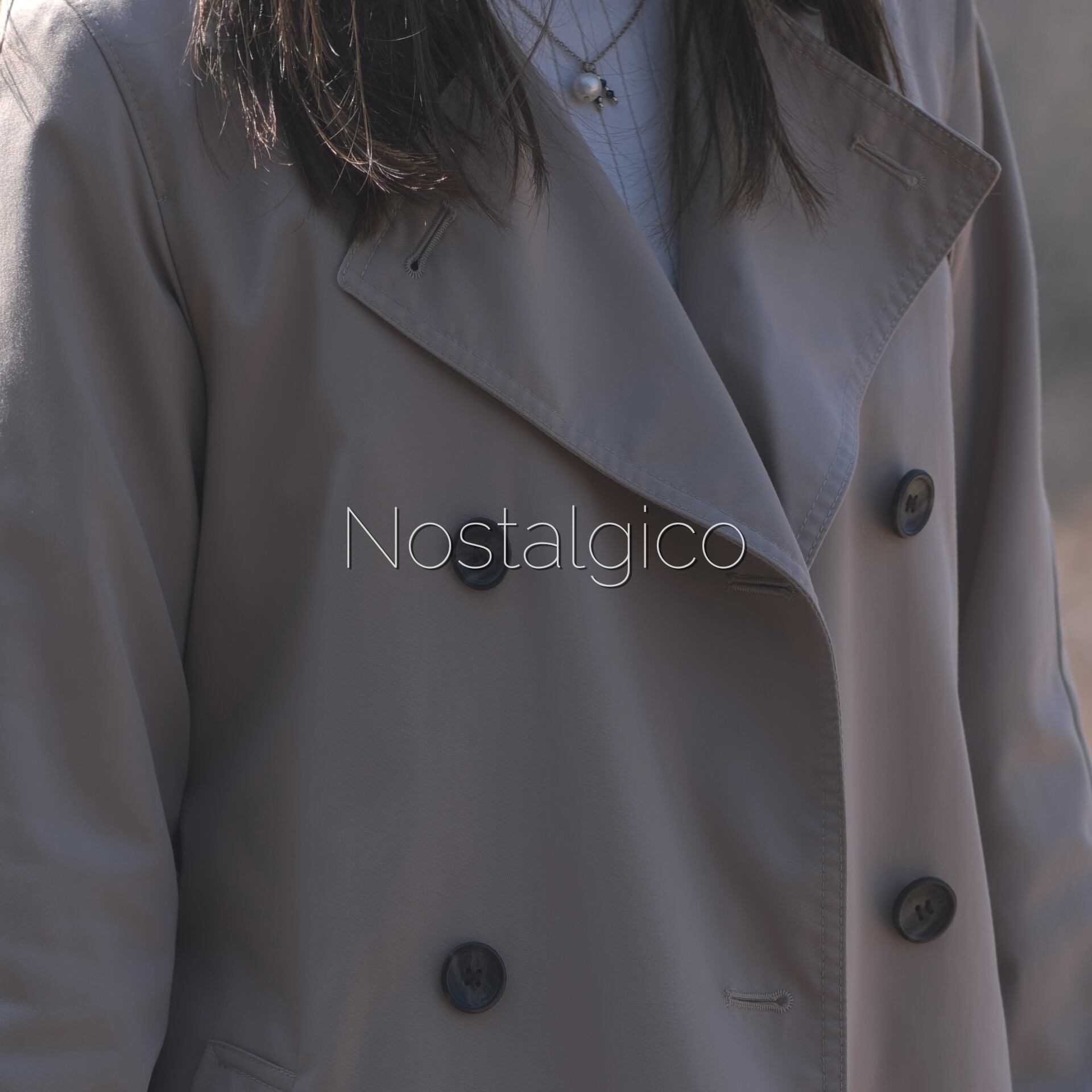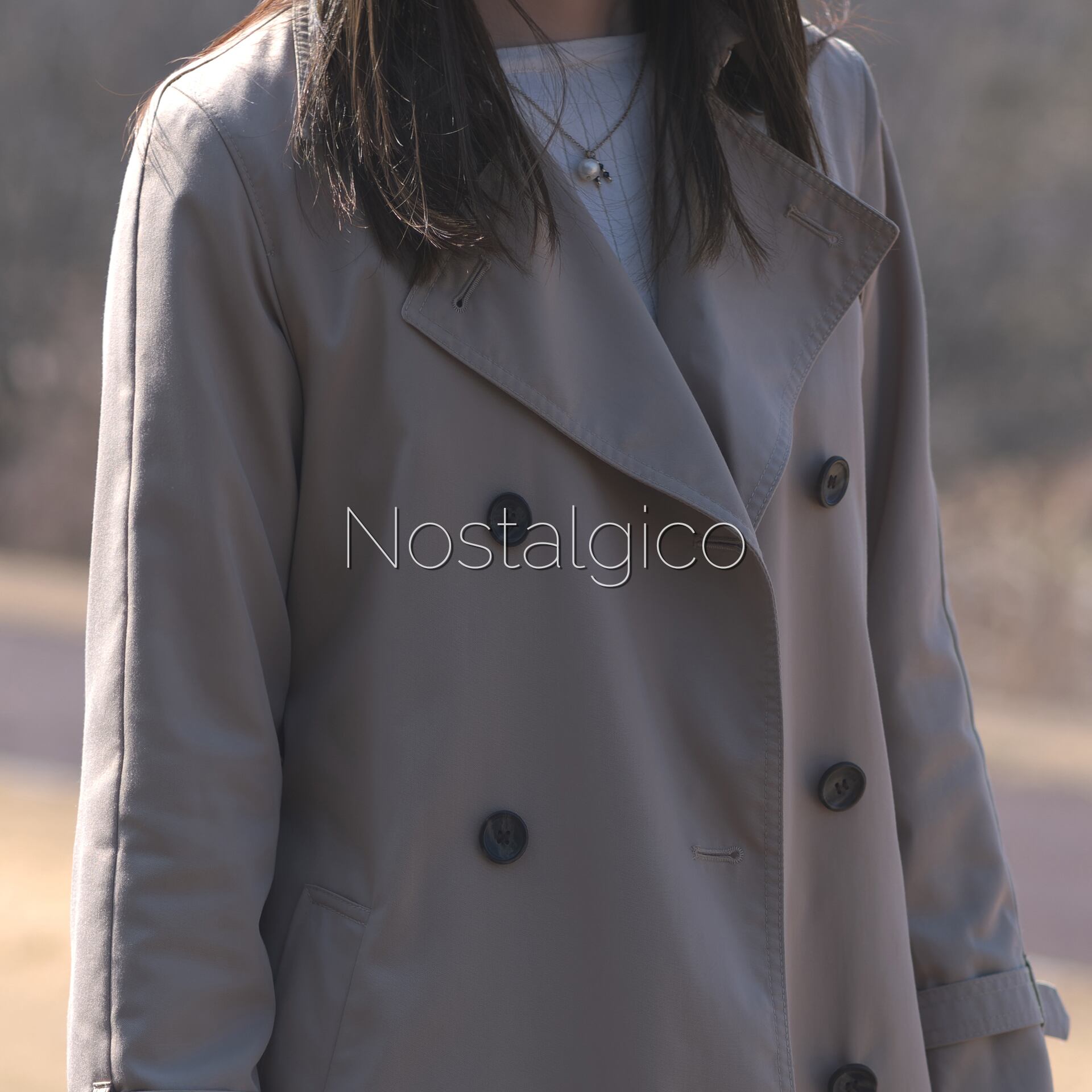 トレンチコートを着た女性の写真素材です。トレンチコートのクラシカルなデザインが、大人の女性らしさを引き立てています。