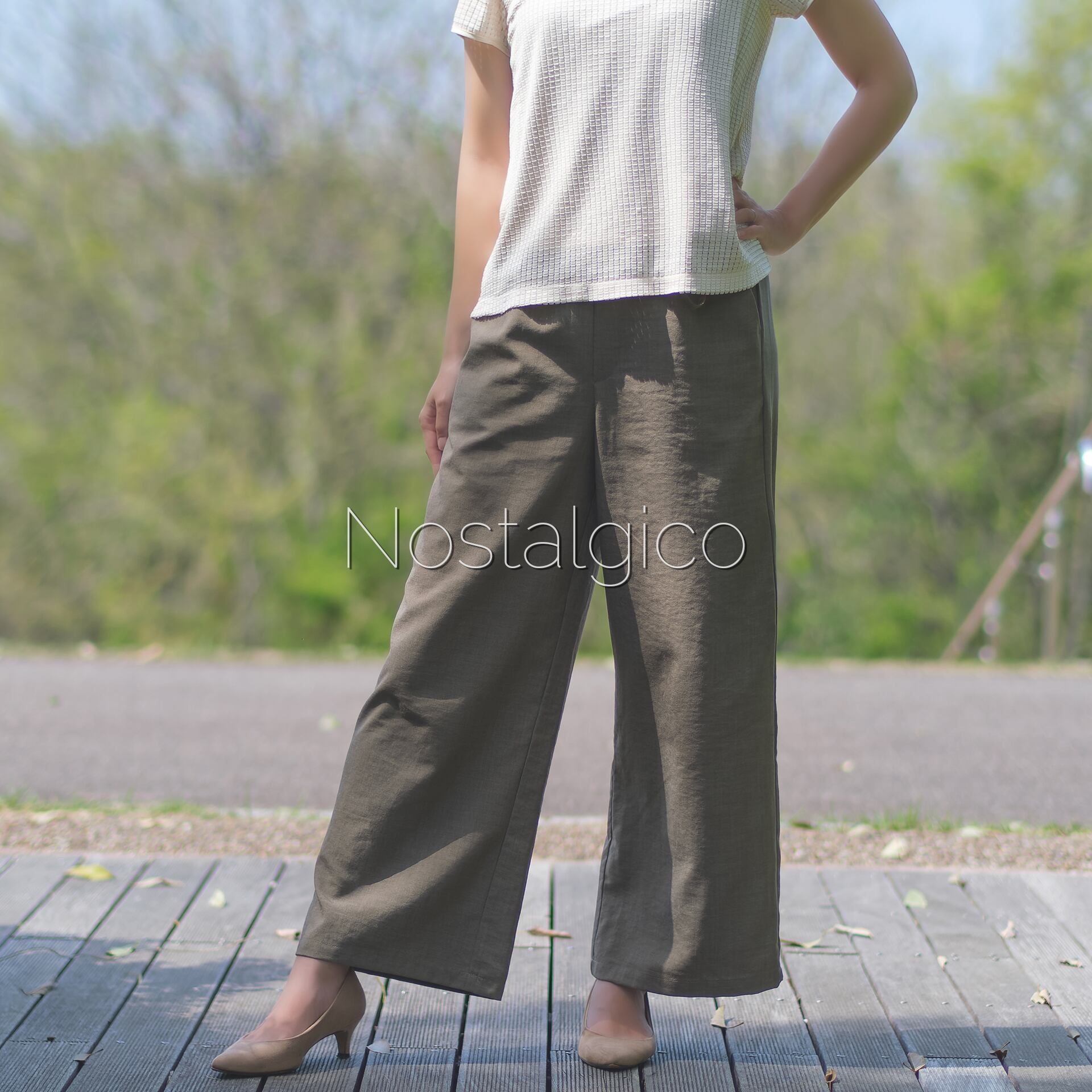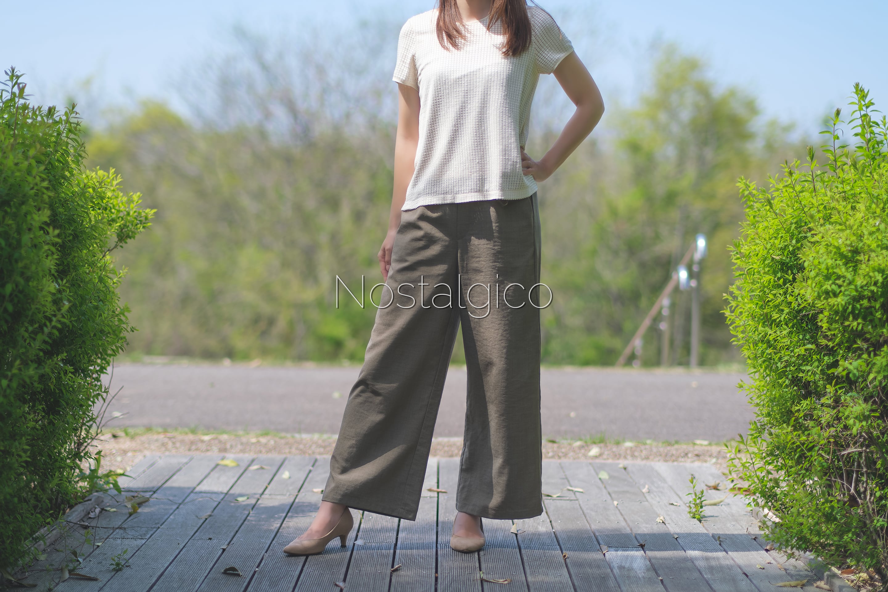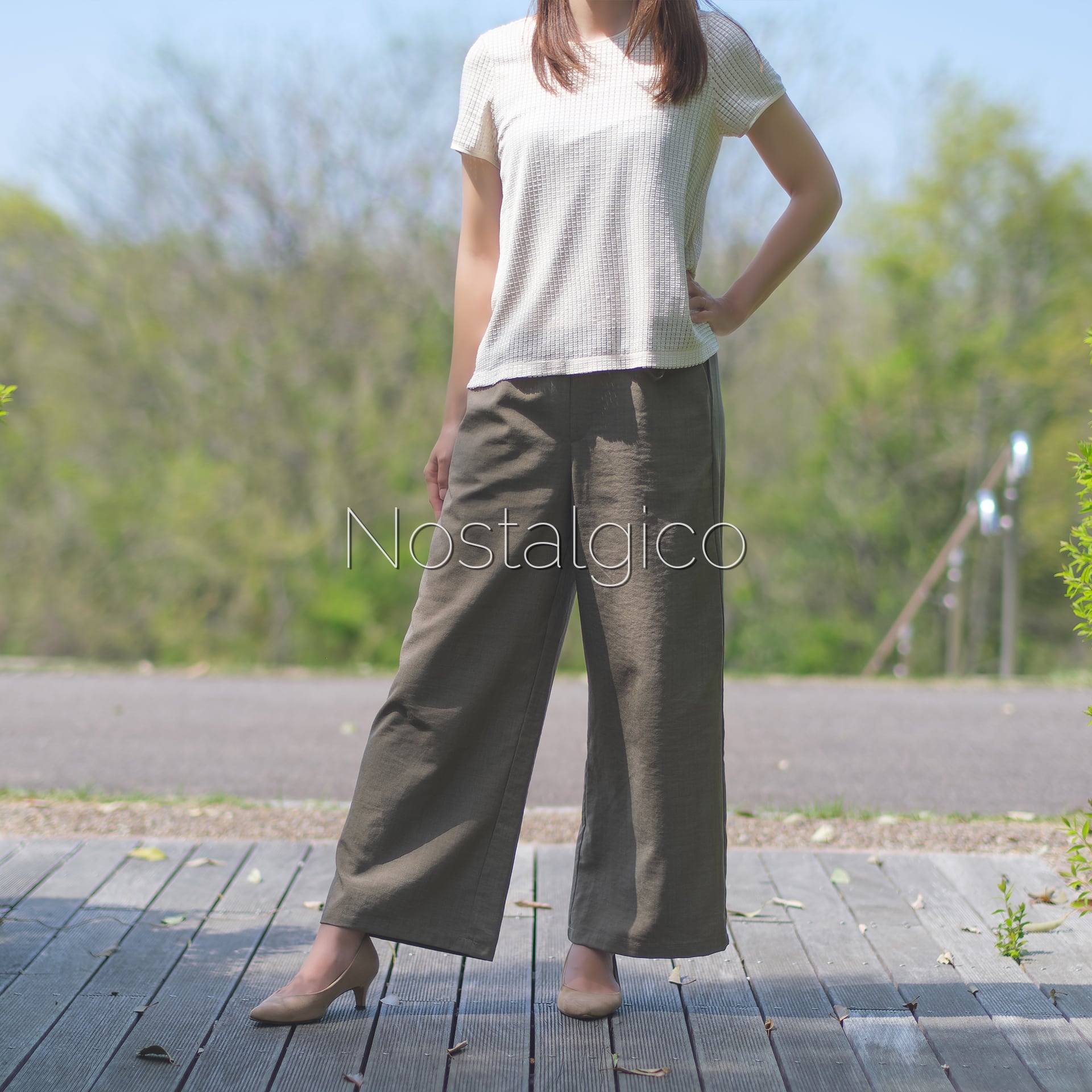 ワイドパンツの写真素材。ワイドパンツのシルエットから、開放感やゆったりとした雰囲気が伝わってきます。