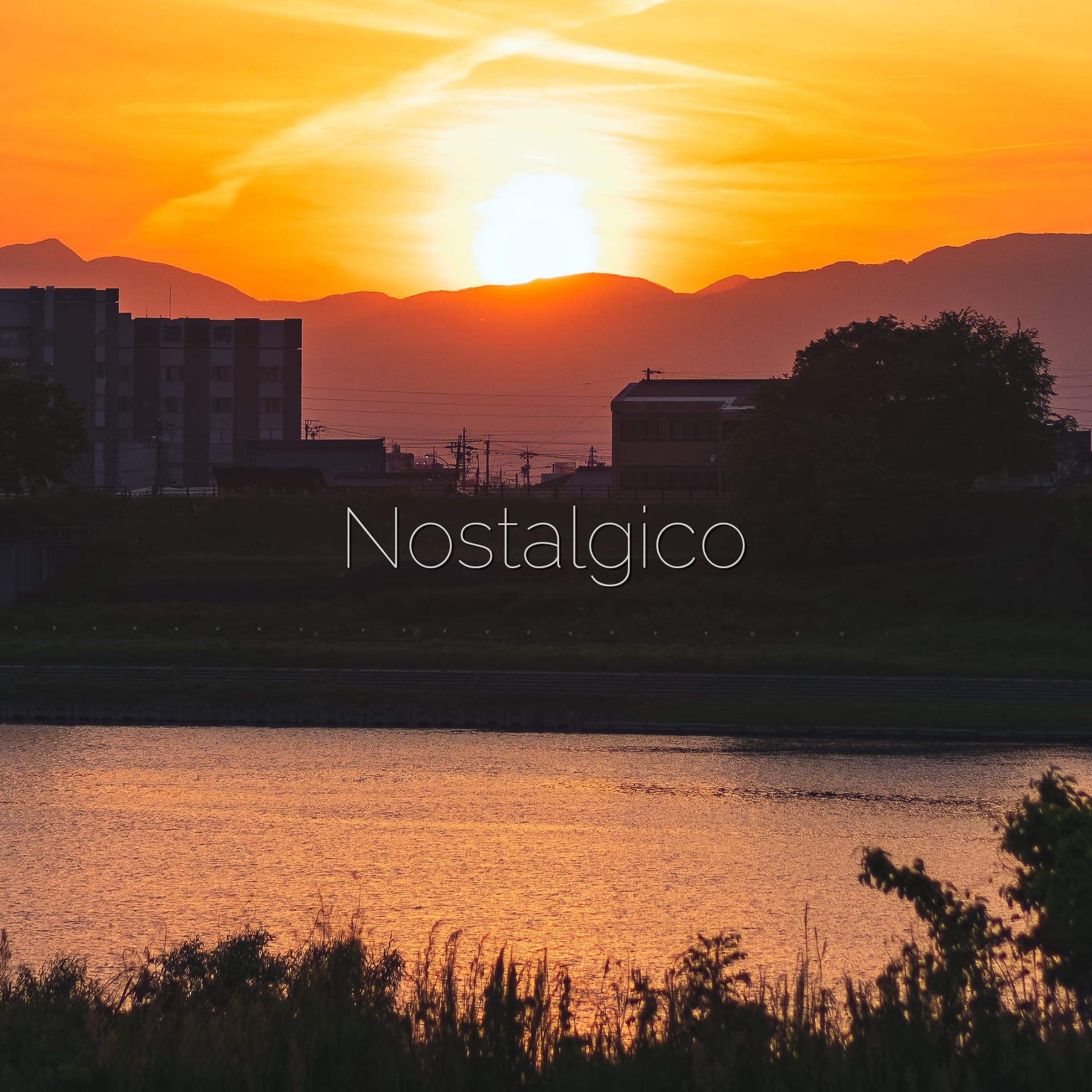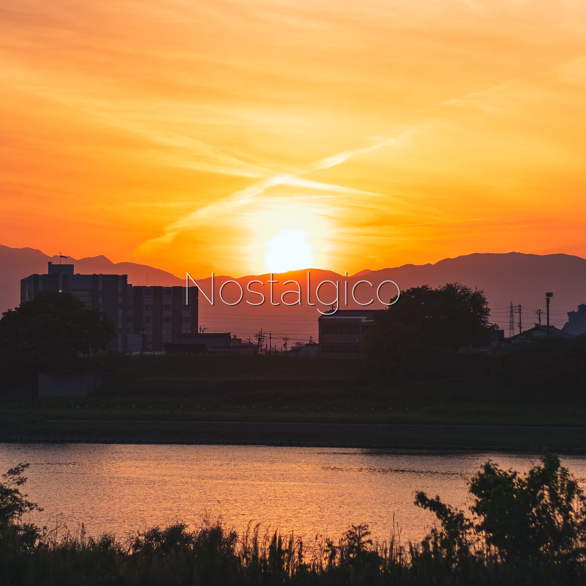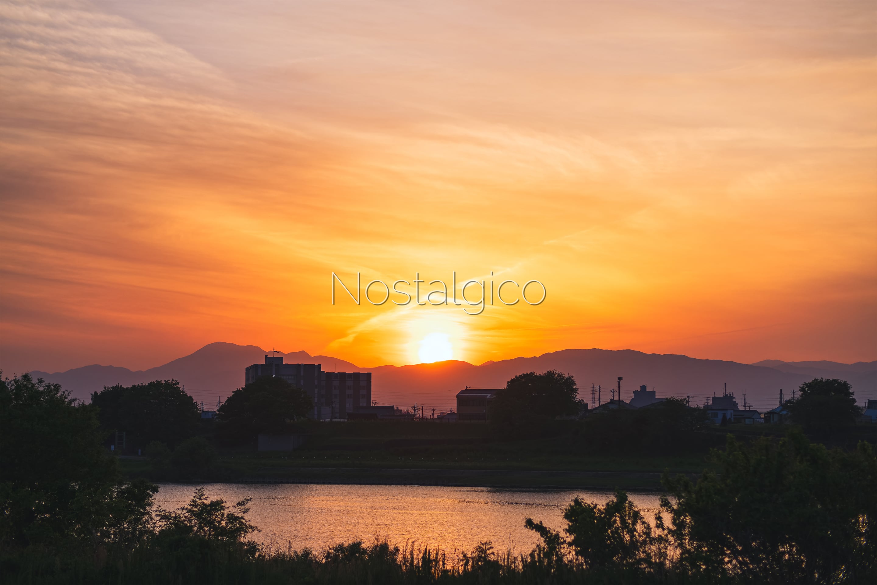 川沿いの町に沈む夕日の写真素材です。ありふれた風景だからこそ、その夕暮れ時の風景は、懐かしさと穏やかさを与えてくれます。
